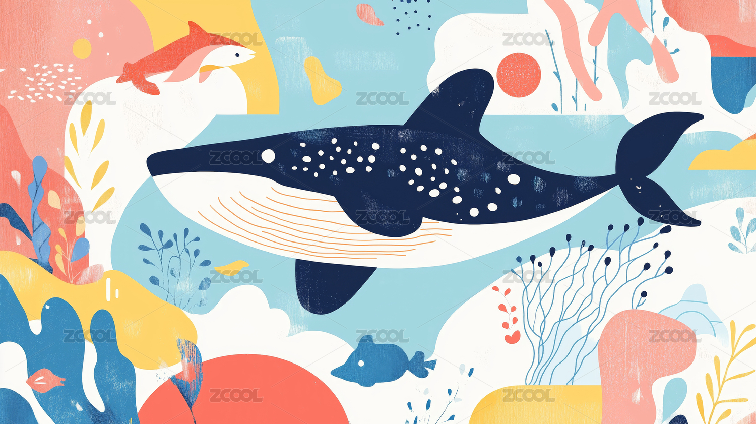 海洋鲸鱼与小鱼插画装饰素材