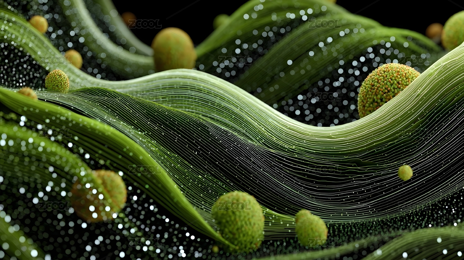 绿色波浪与粒子交织