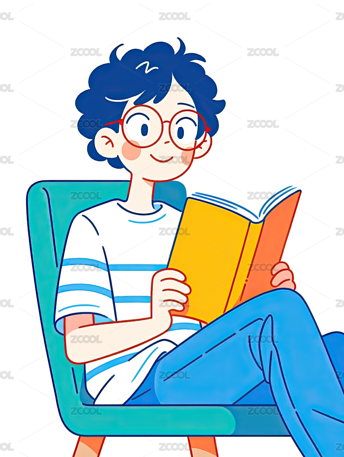 卡通风开心快乐阅读学习的可爱男孩教育插画