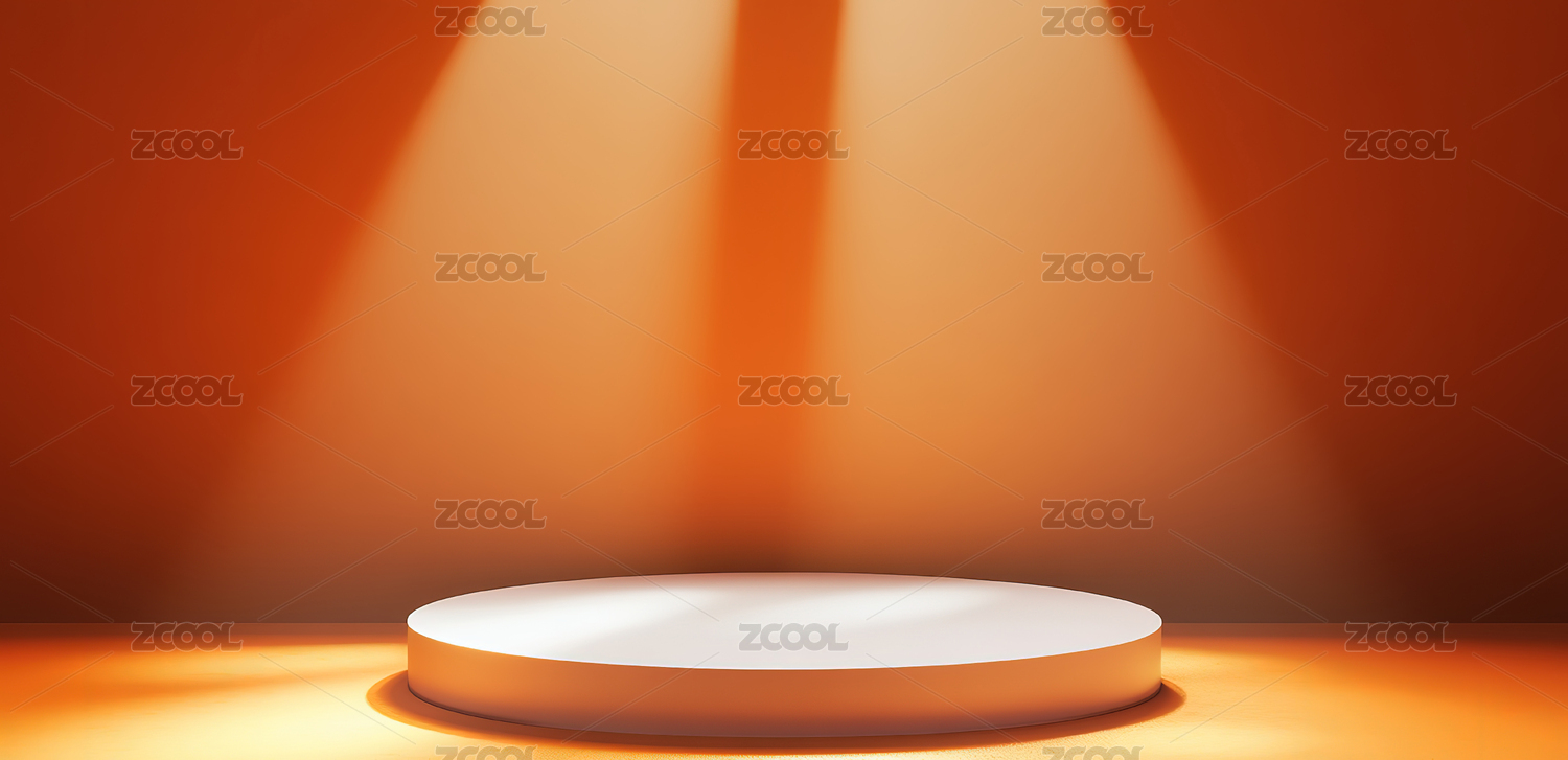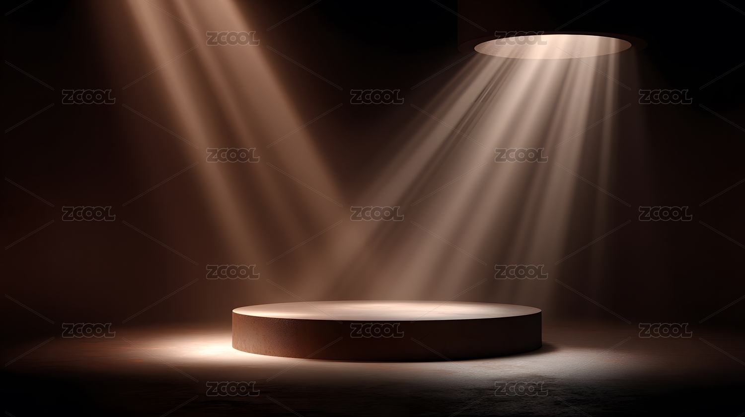 舞台聚光灯下的圆形展示台,棕色背景