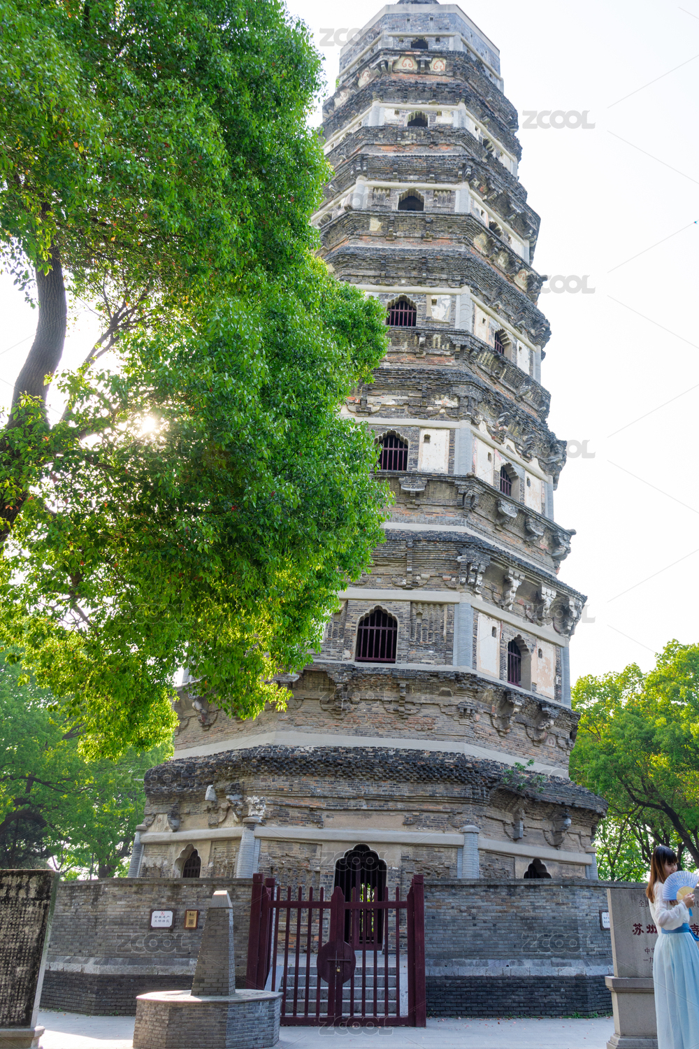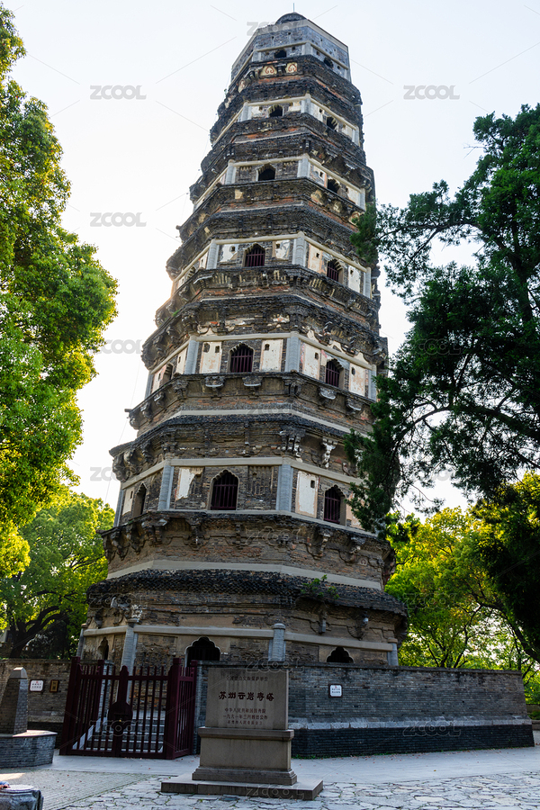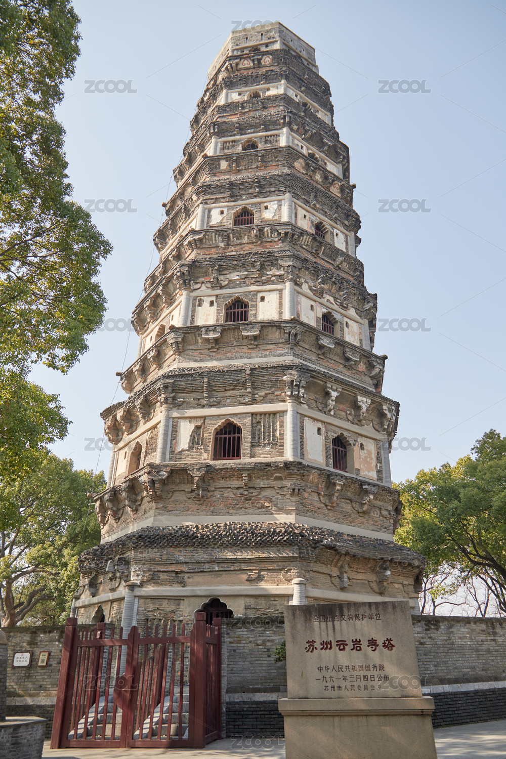 中国江苏苏州灵岩寺塔虎丘塔斜塔