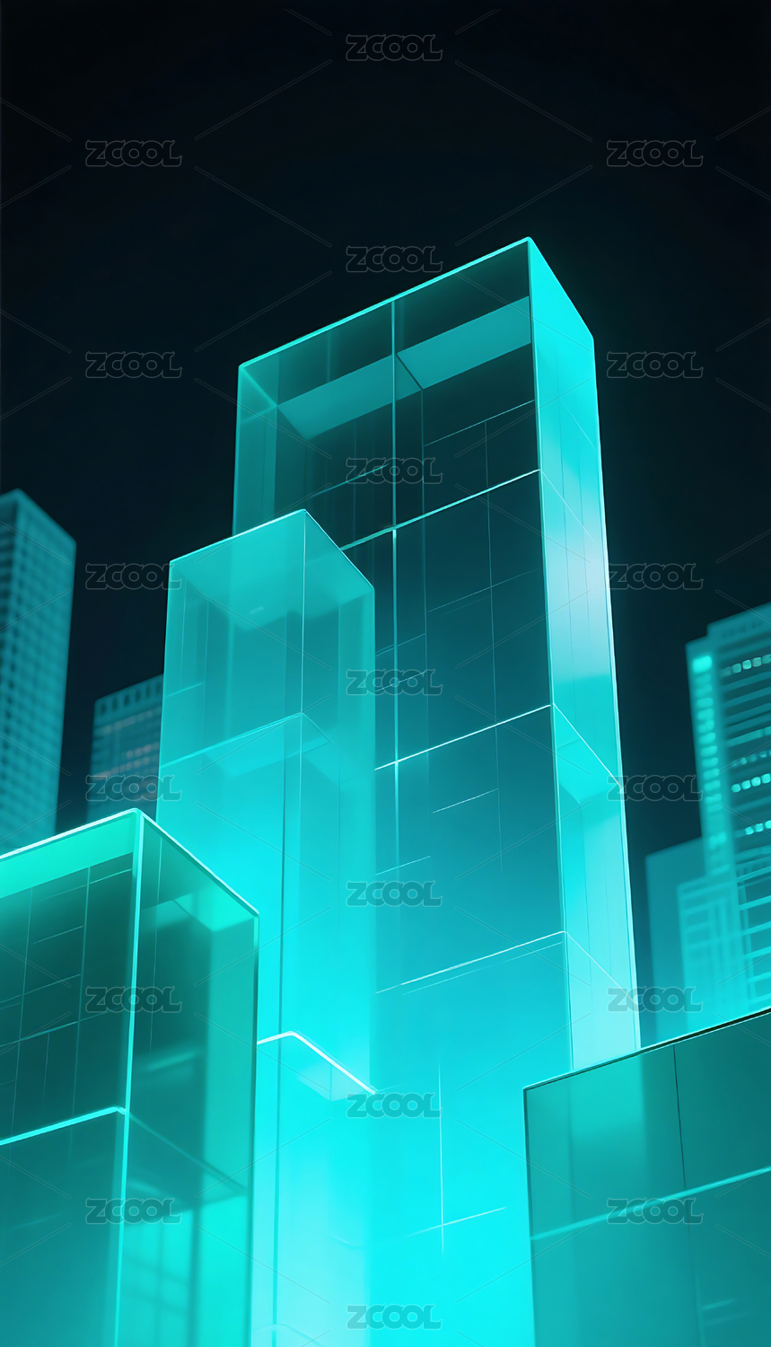 蓝色商务科技未来玻璃质感图形设计城市建筑