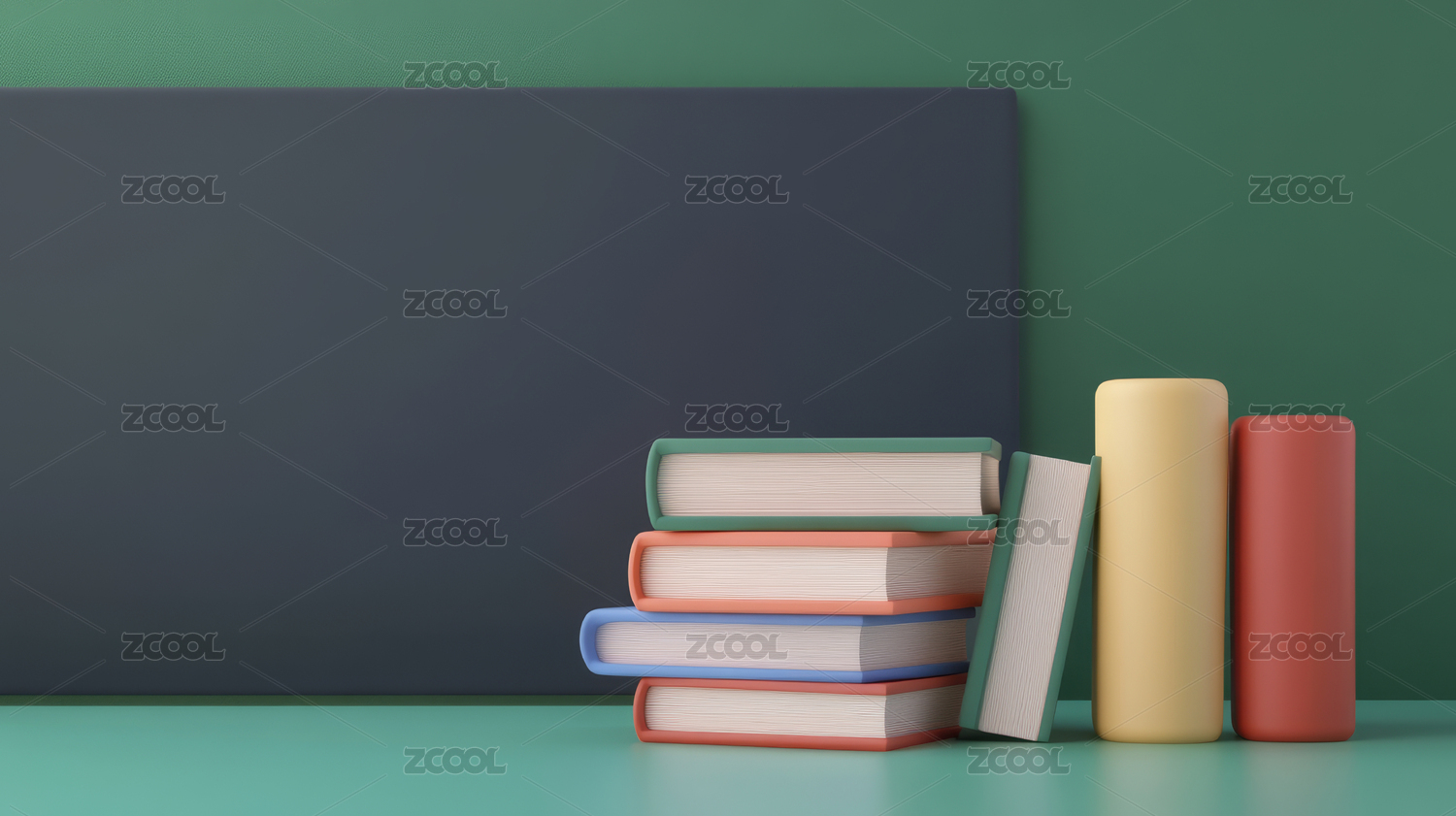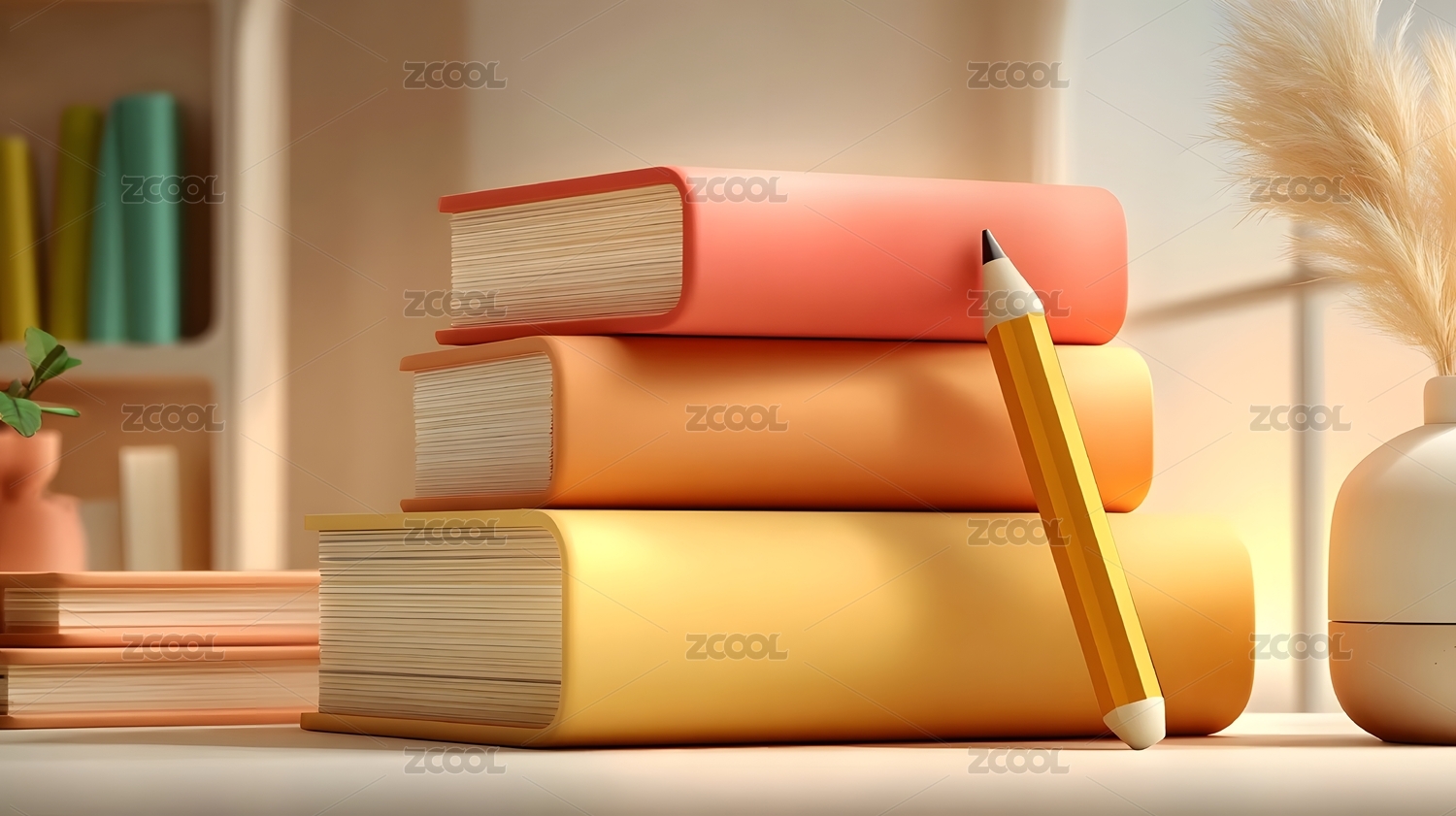 清新,明亮,纯色,桌面,上,翻开,书,3D,立体,插画