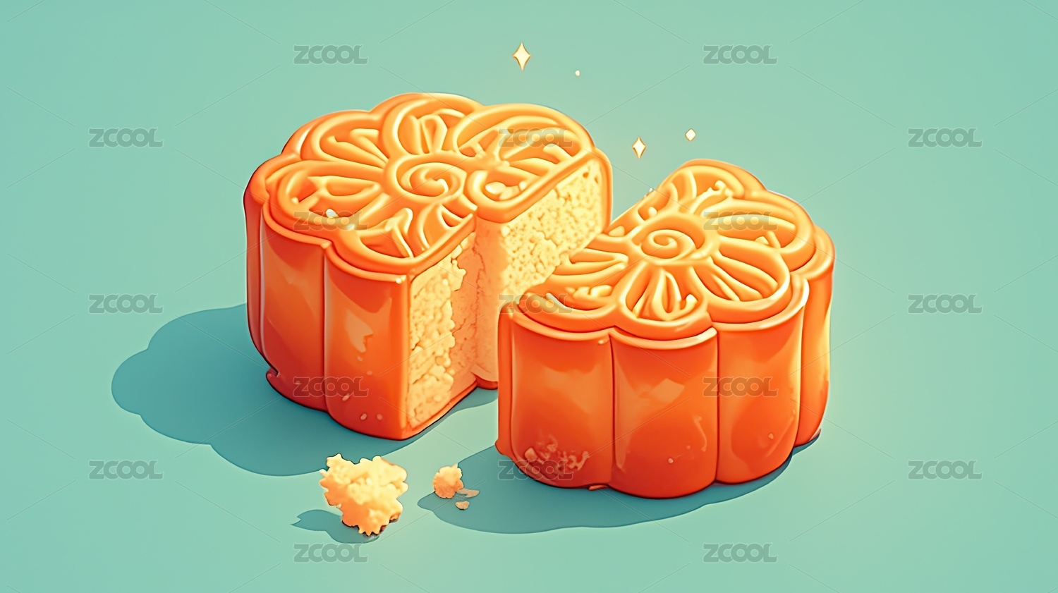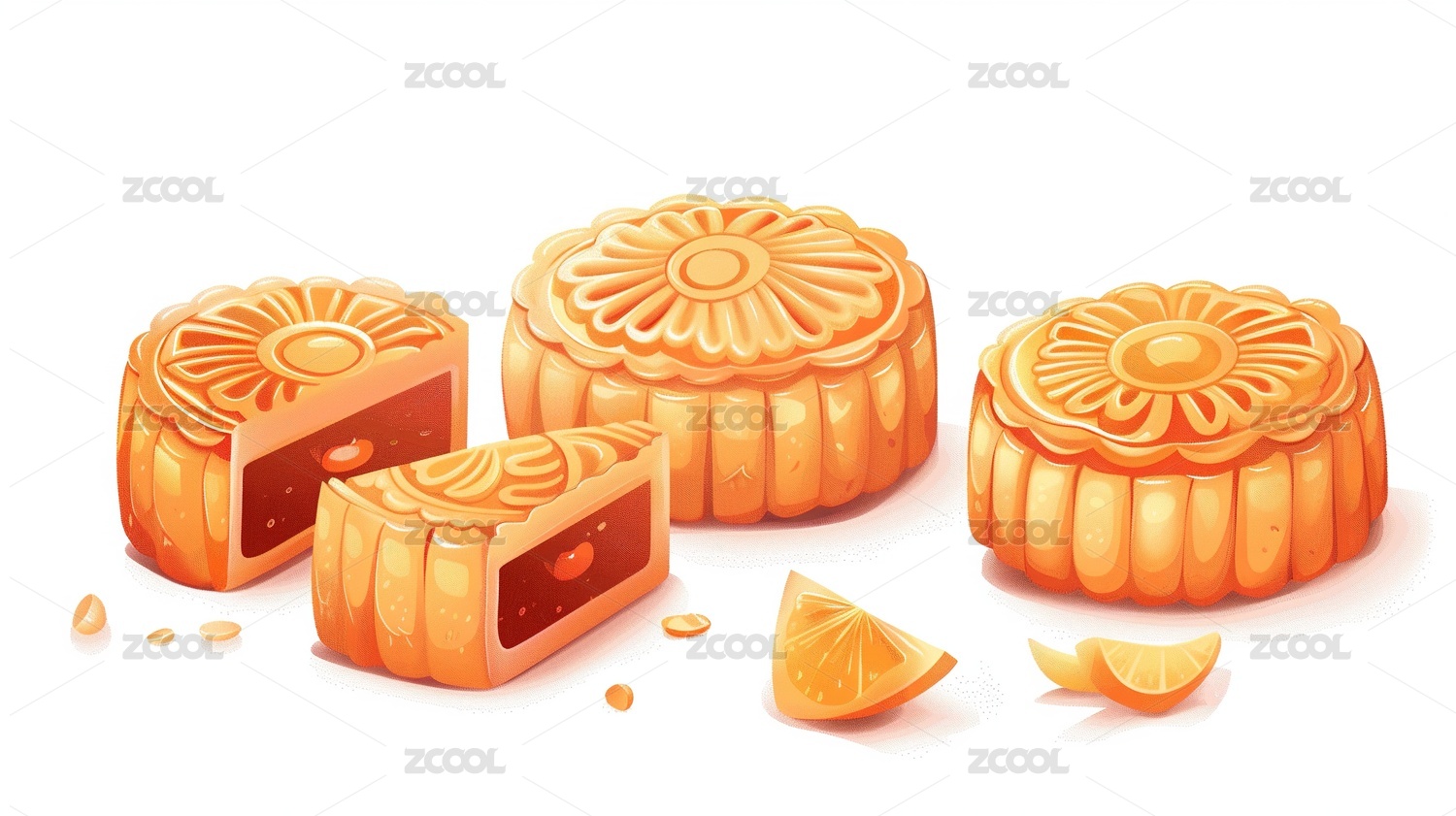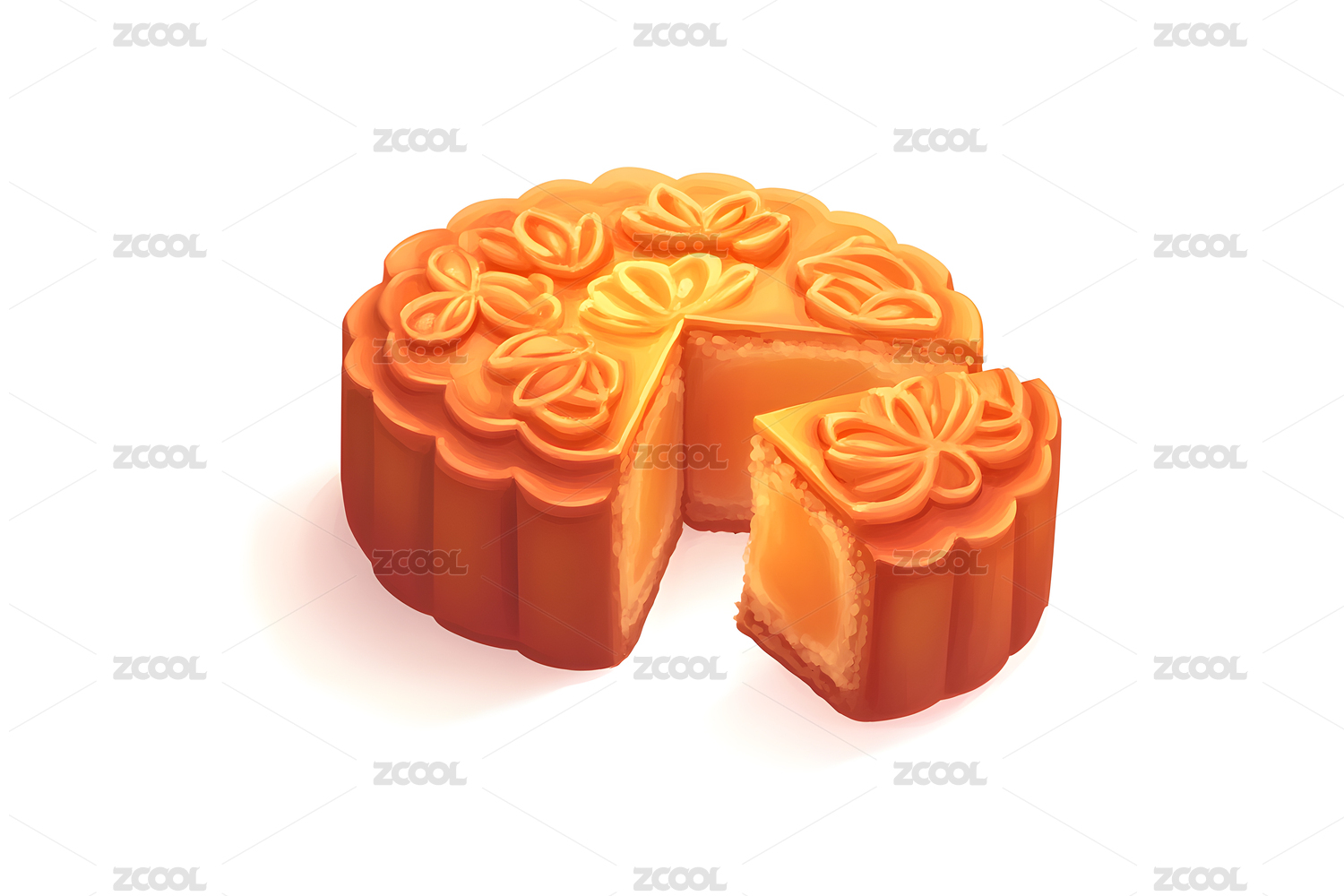 橙色月饼传统美食的细腻呈现