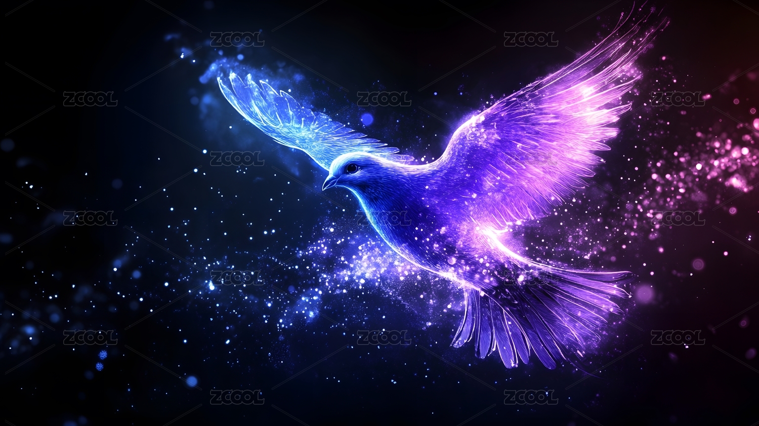 神话,黑背景,夜空,展翅,飞翔,发光,神鸟,插画,黑底,夜晚