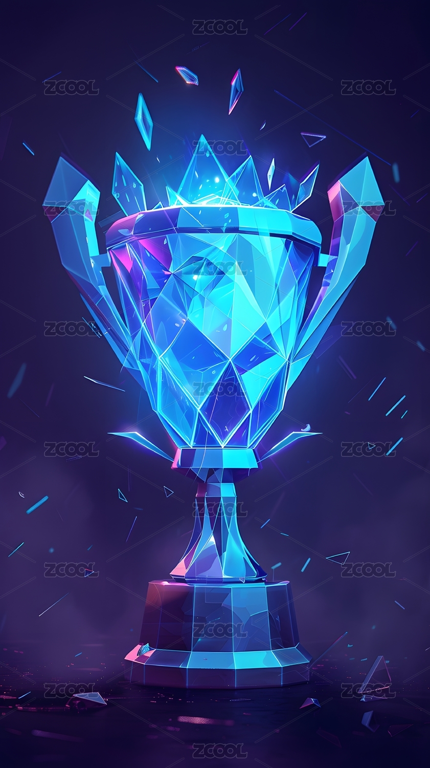 黑底荧光色镶宝石酒杯道具图标3D立体插画