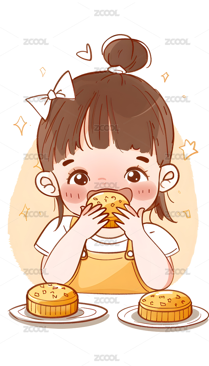 卡通可爱女孩手拿蛋糕清新治愈插画