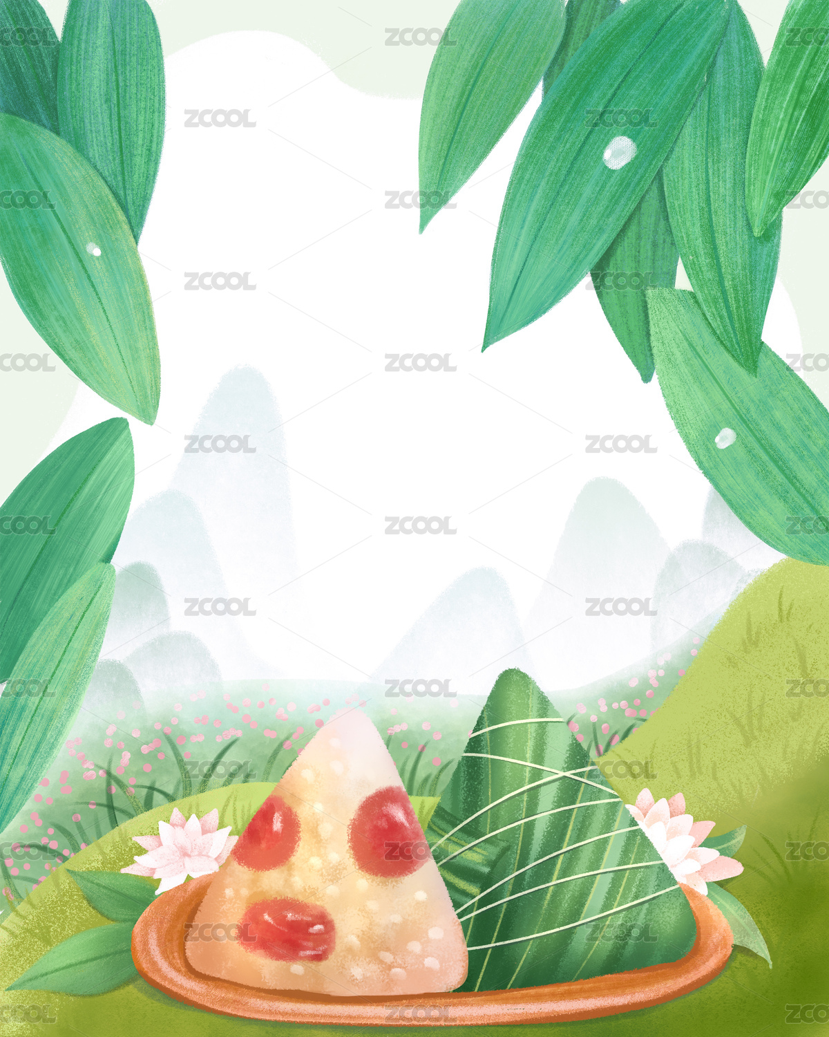 端午节粽子槐花酒红樱桃竖构图插画海报水彩