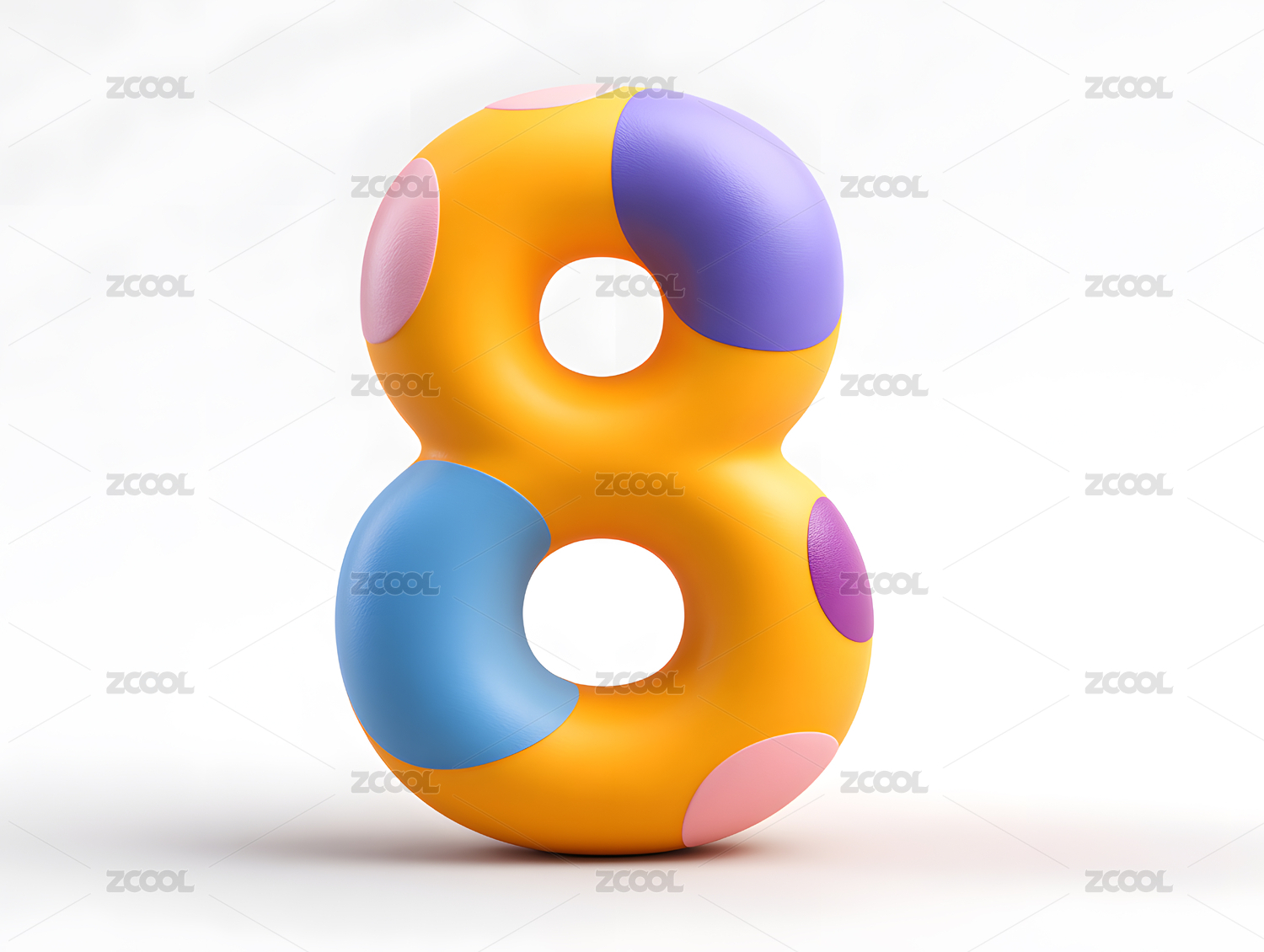 数字,装饰,白色背景,设计,创意,艺术,现代,数字8,3D渲染,抽象
