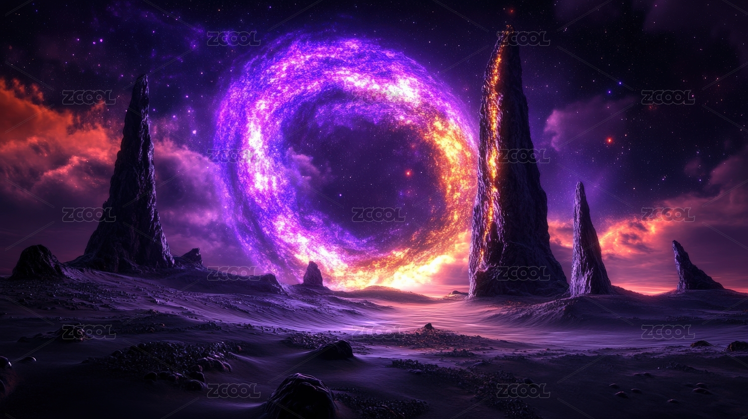 紫色,夜晚,景观,宇宙,神秘,山脉,道路,寒冷,科幻,星空