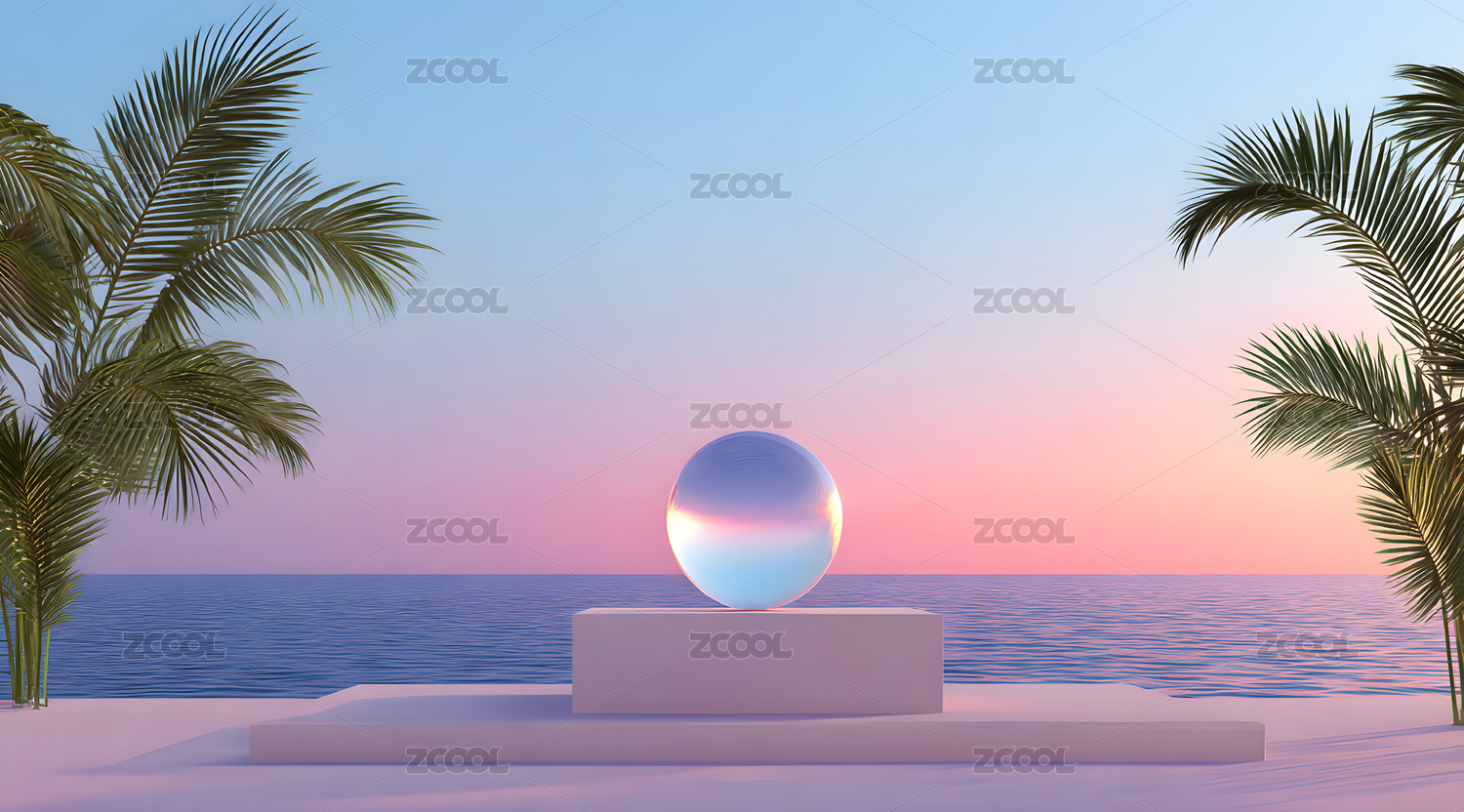 海边棕榈树旁的透明球体