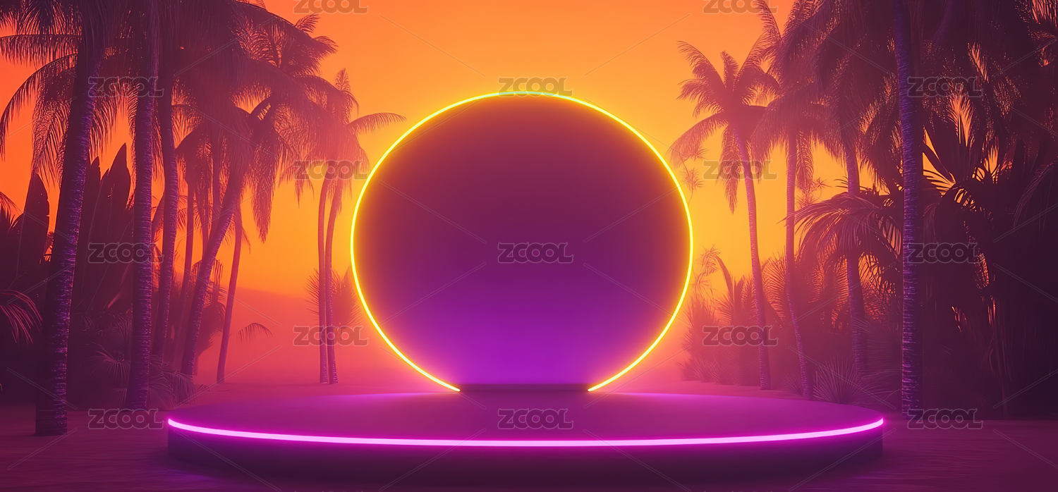 霓虹灯圆形平台海边景象