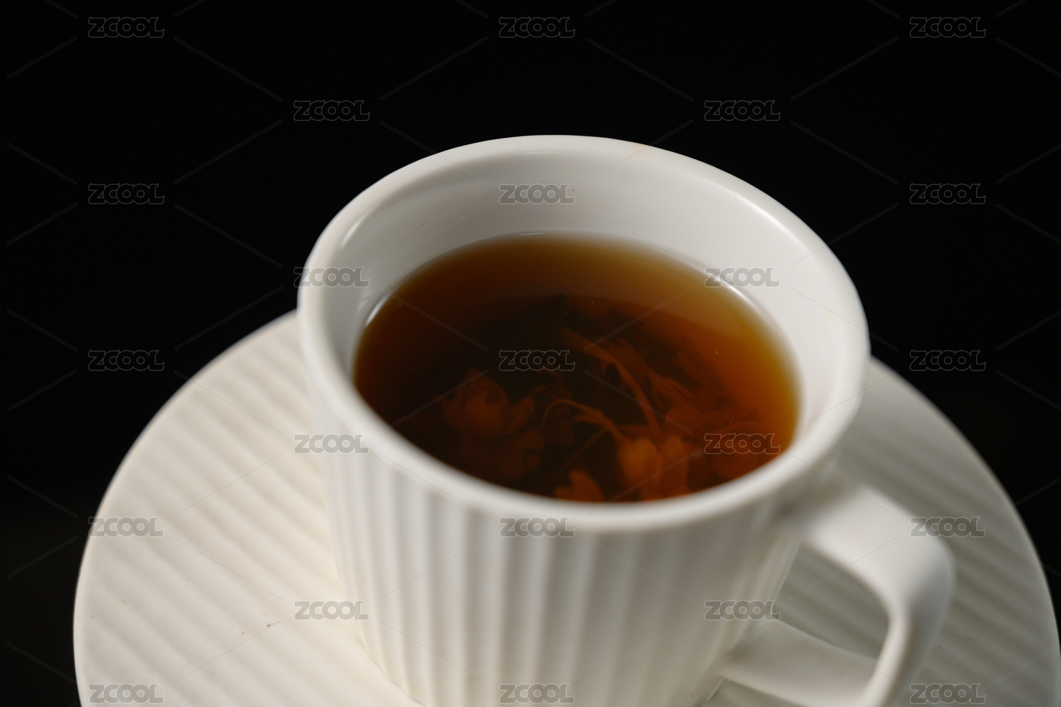 桌面上的杯子里的甘甜可口的茶花花茶
