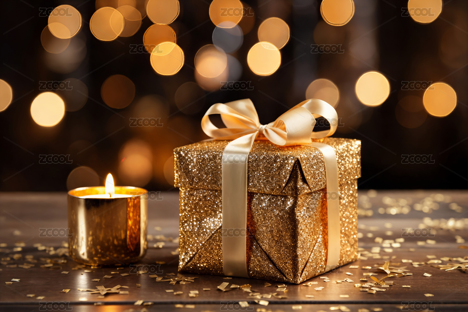 金色礼盒闪耀着节日光芒