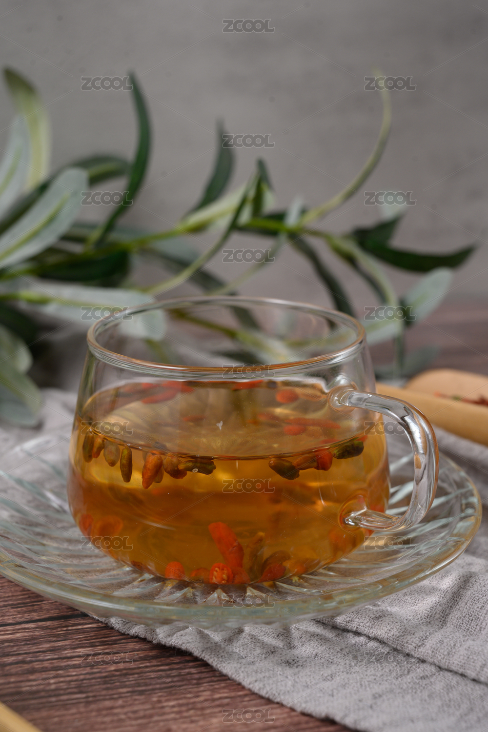 桌面上的杯子里的甘甜可口的夏枯草凉茶