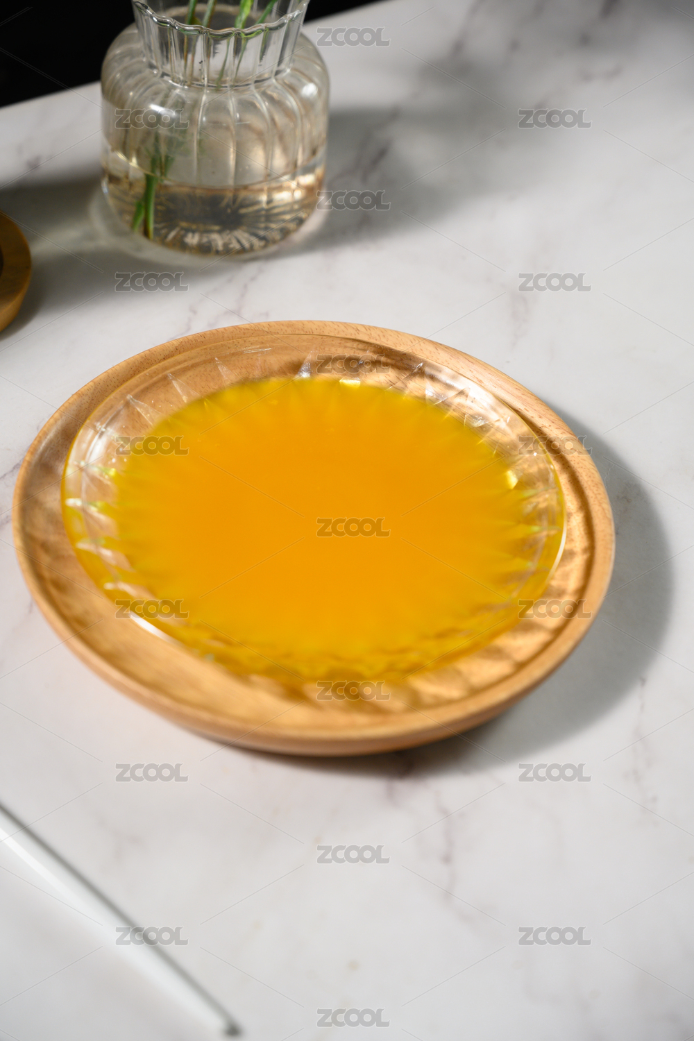 桌面上的盘子里的干爽通透的吉利丁