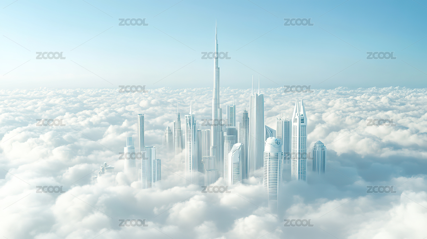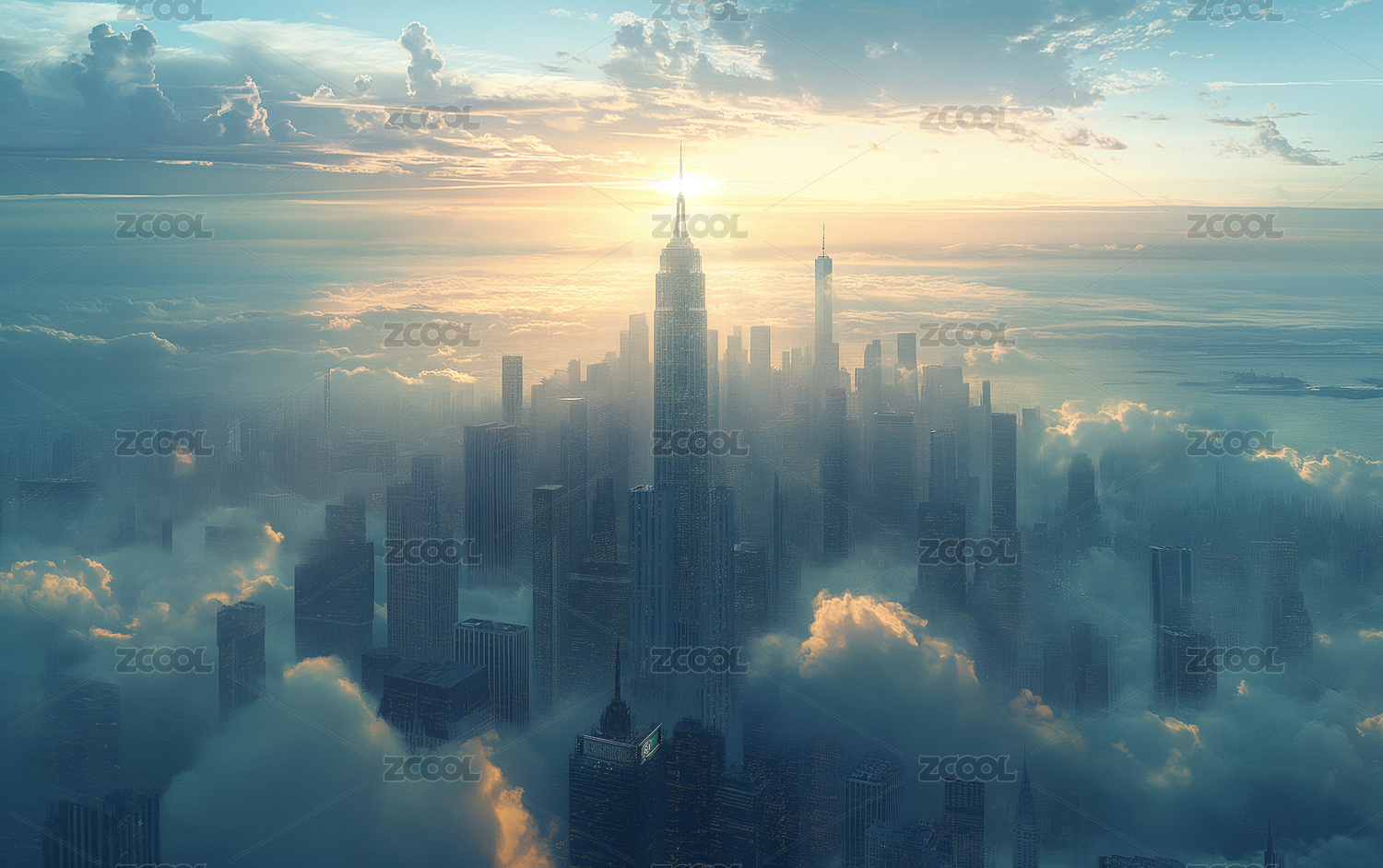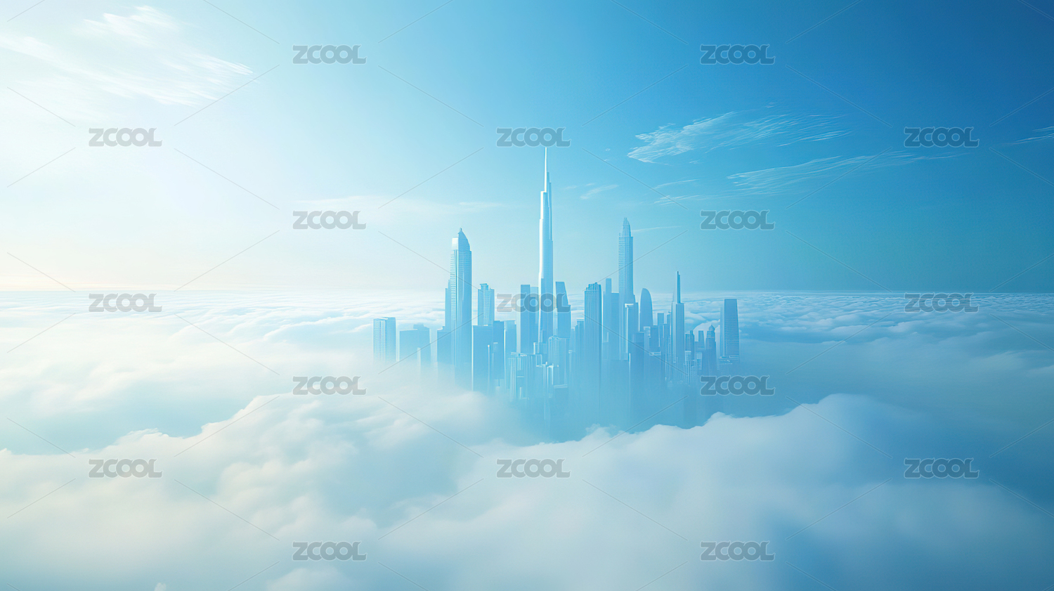 云层中的城市高楼大厦