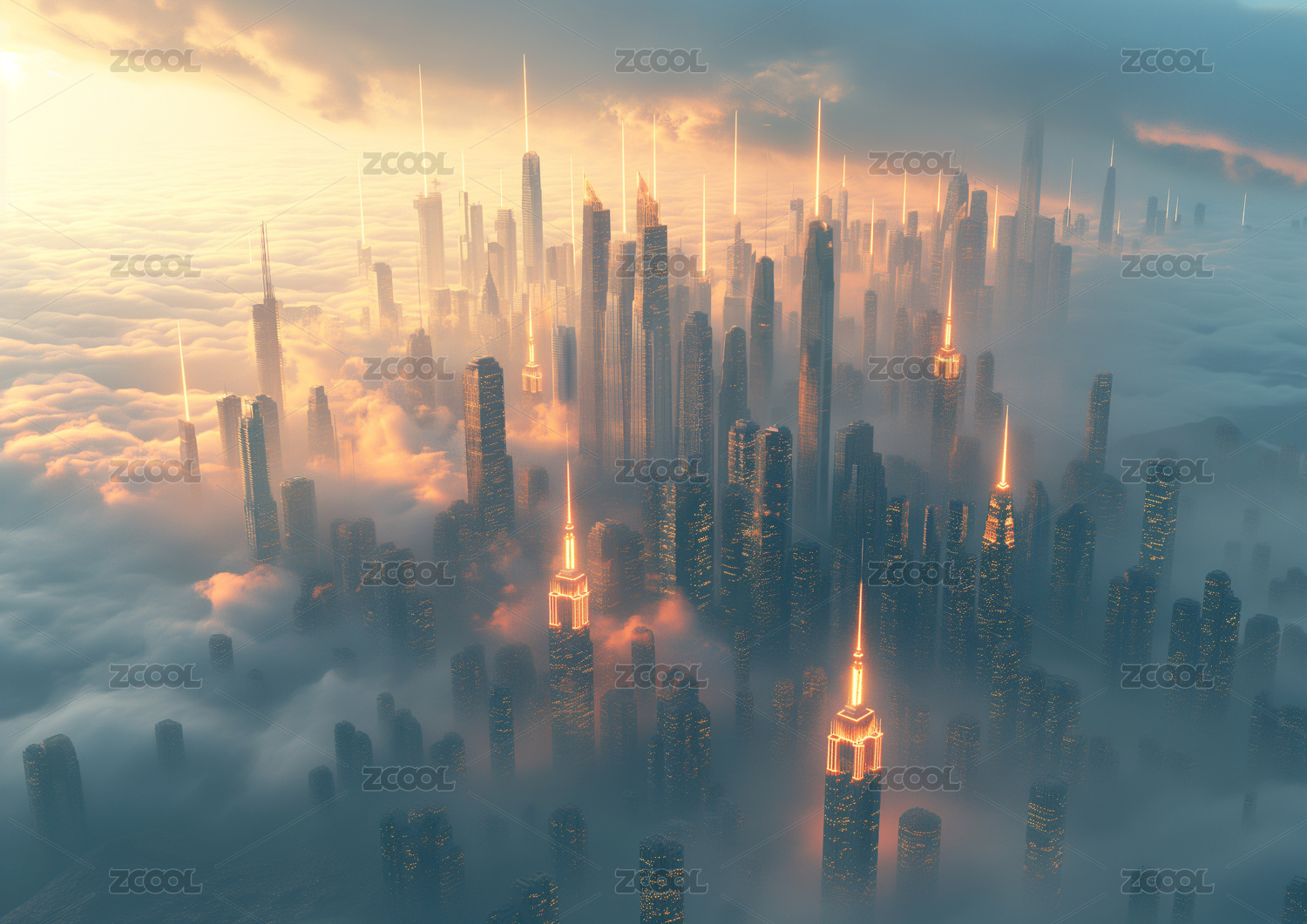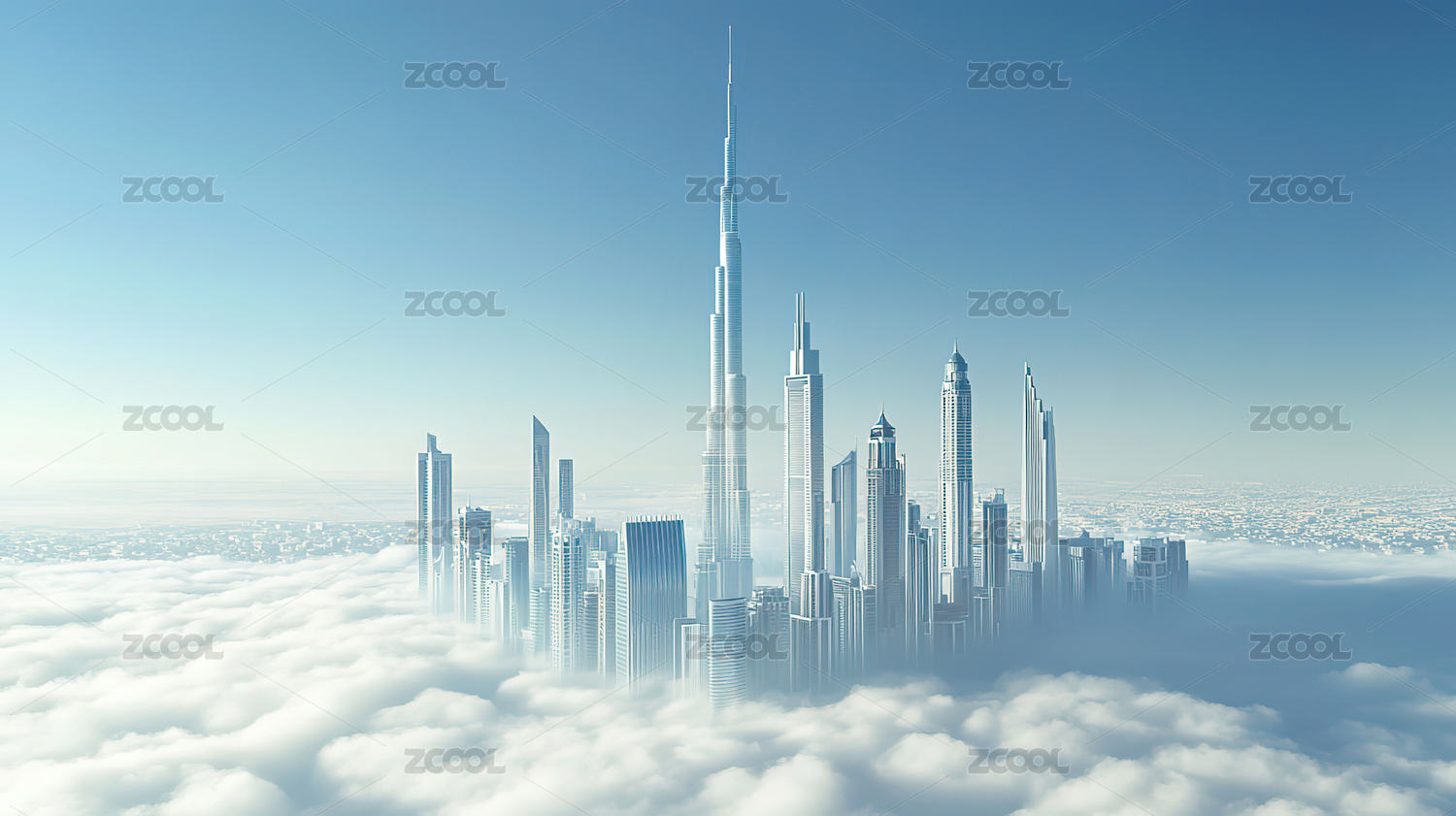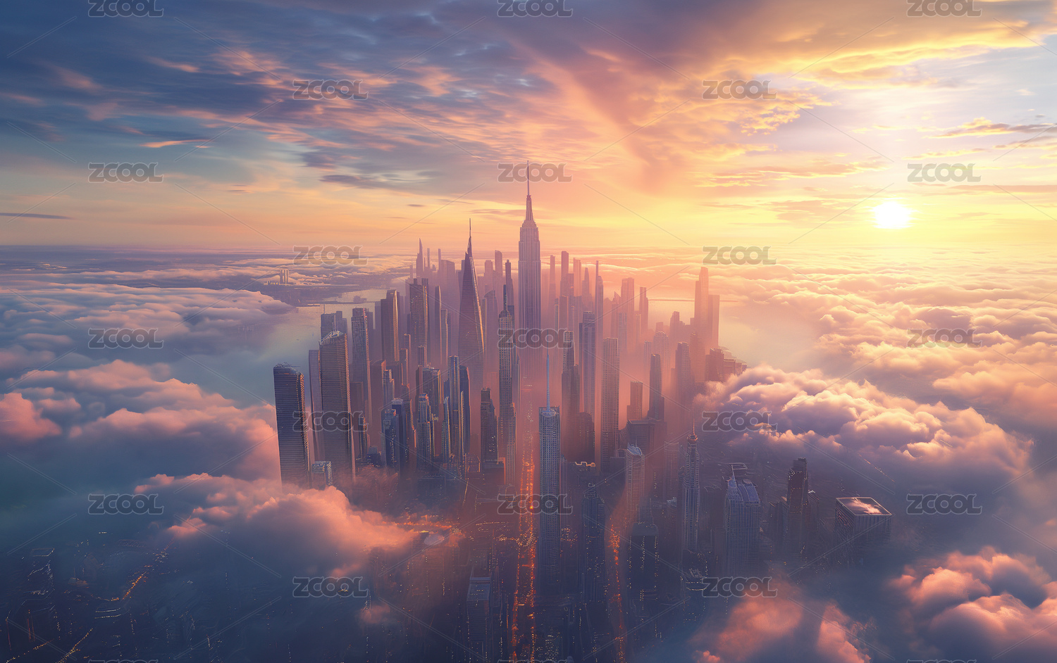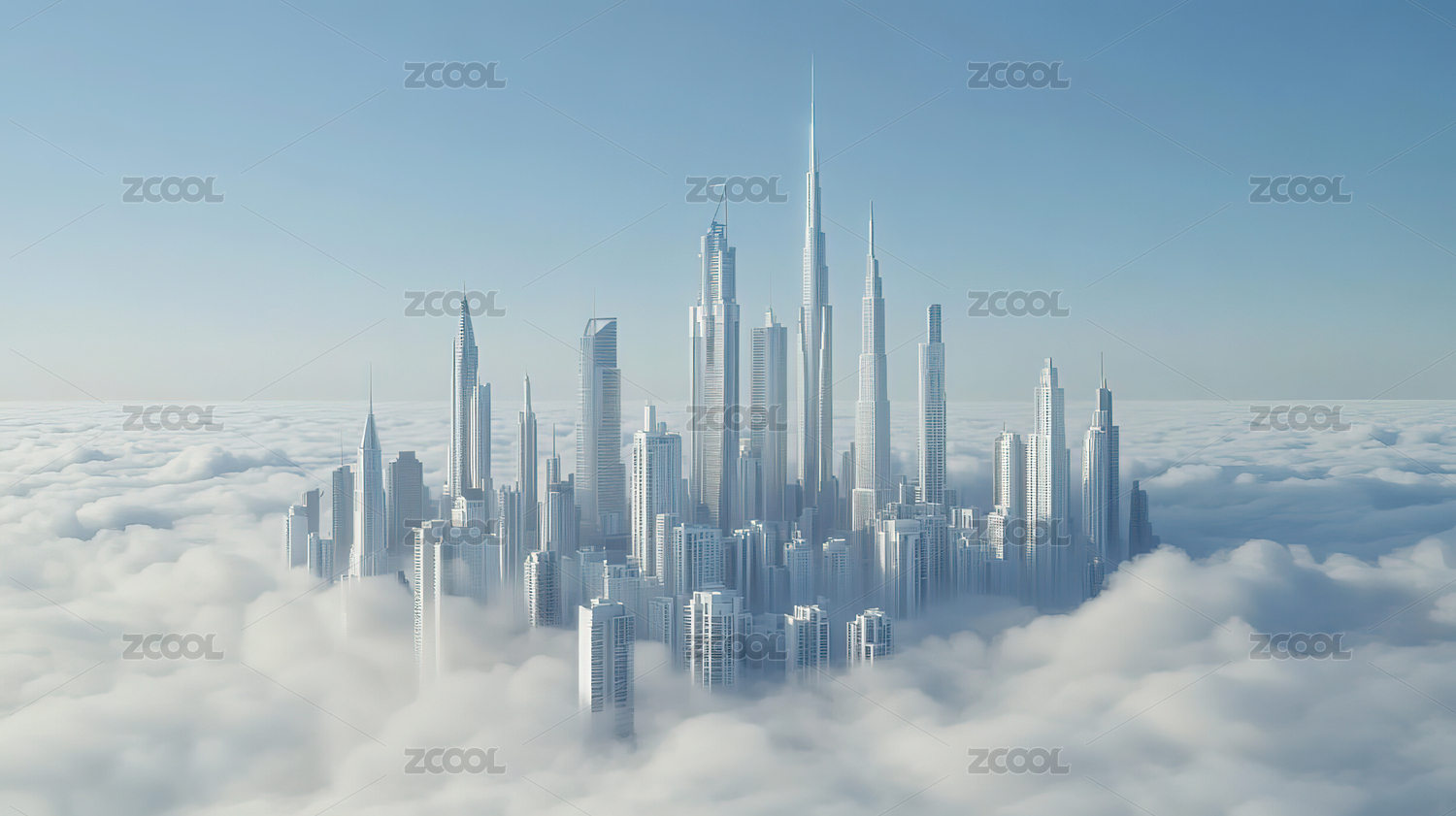 云层中的城市高楼大厦