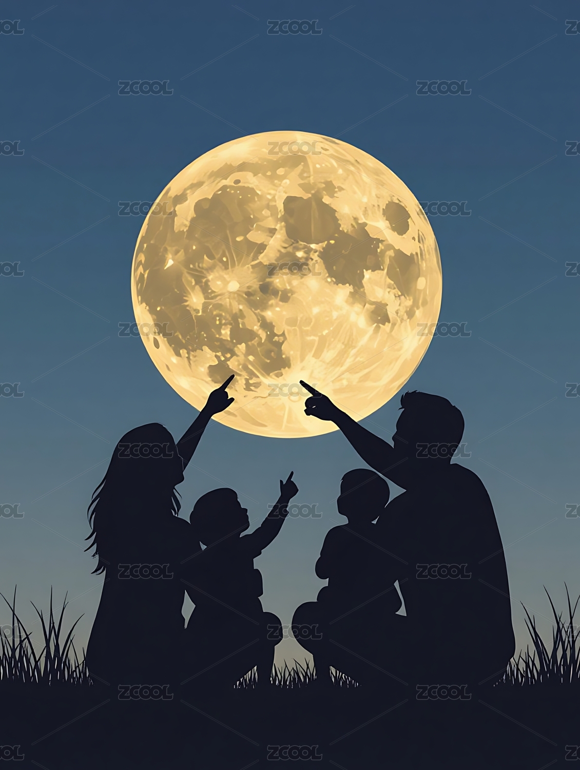 中秋,中秋节,节日,AIGC202403,兔子,赏月,月亮,平面,风格,插画