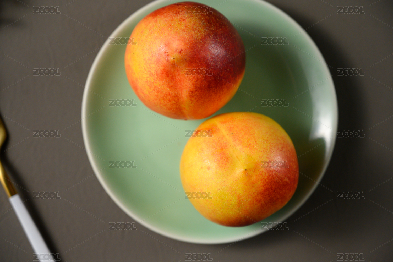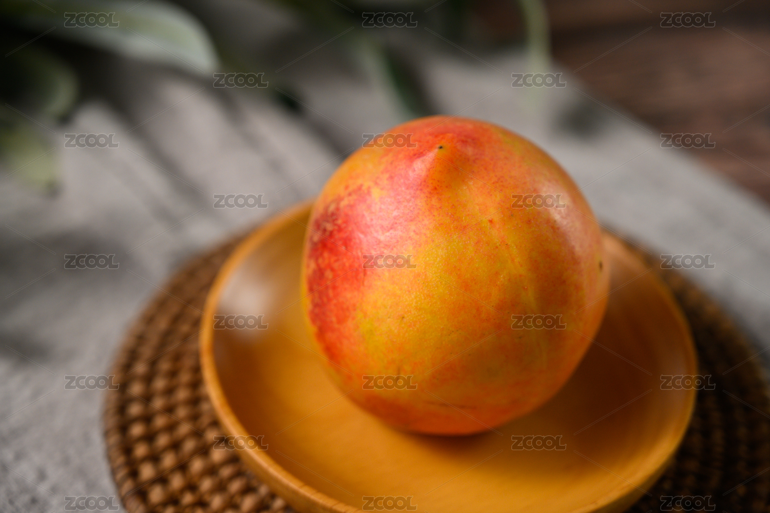 桌面上的盘子里的美味可口的新鲜黄桃
