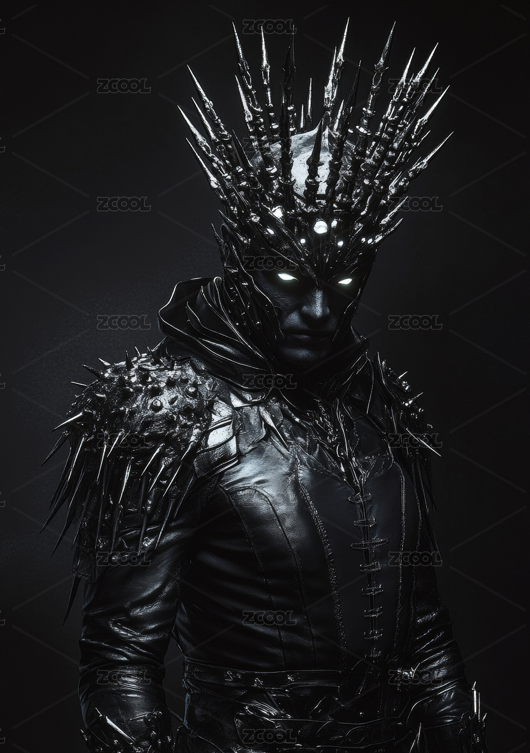 身穿黑色尖刺盔甲的人物