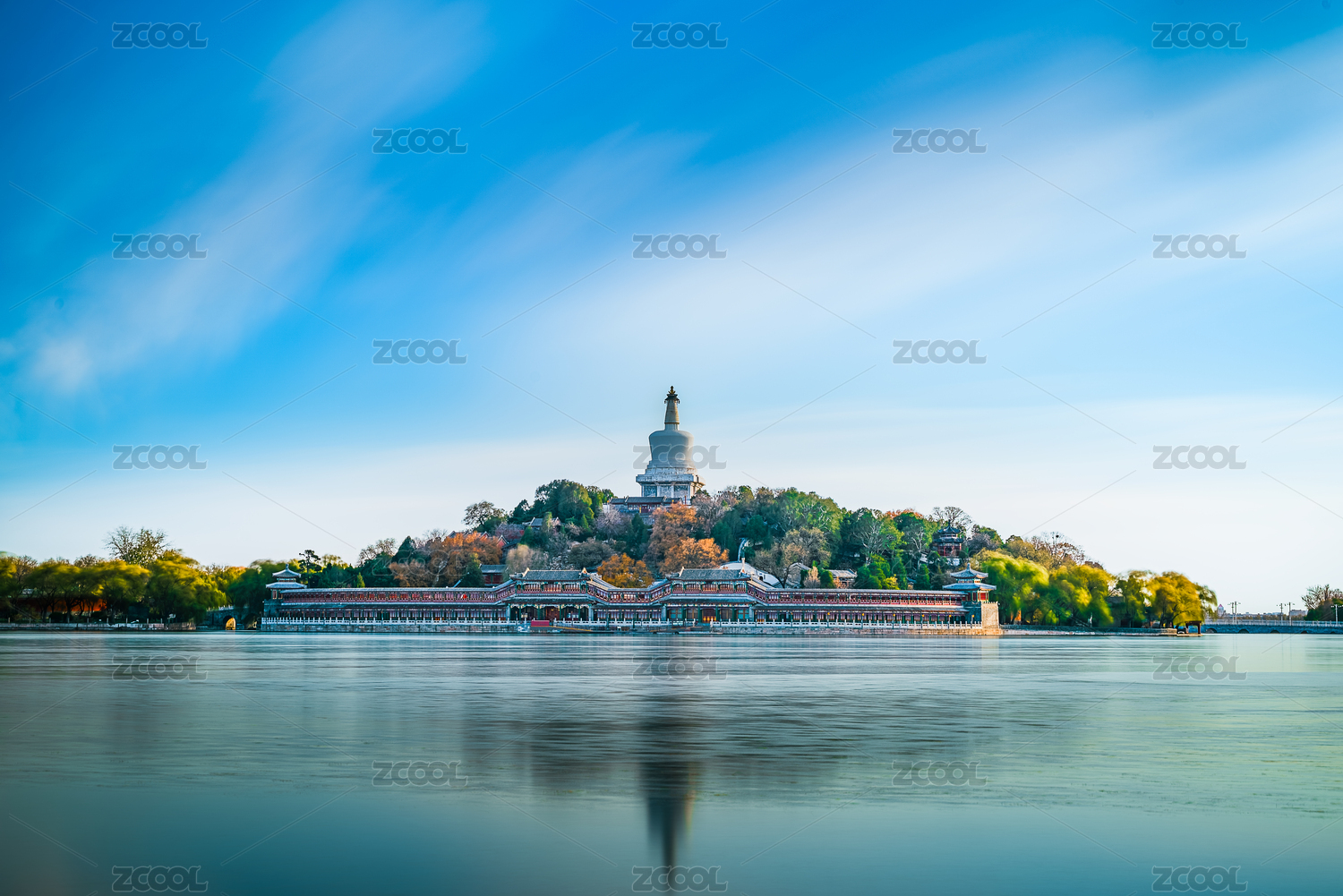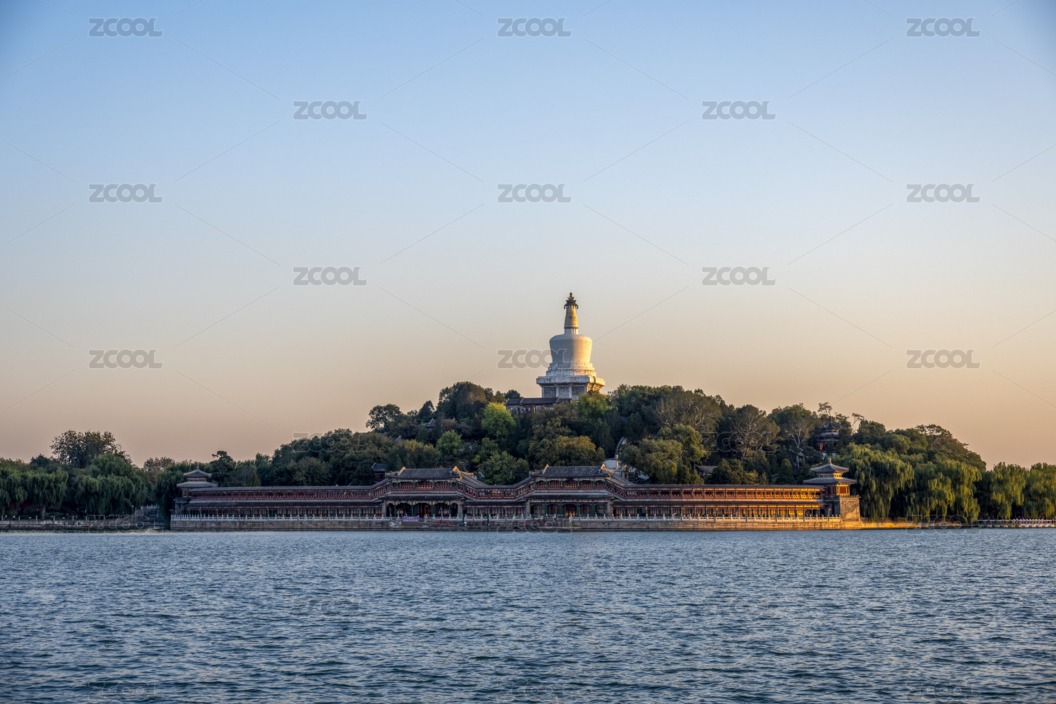 北海公园,北京,白塔,塔,地标,水面,倒影,傍晚,落日,冬季