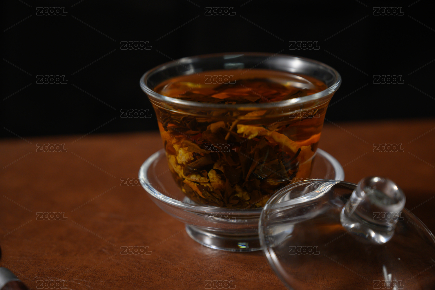 桌面上的杯子里的甘甜可口的陈皮白茶