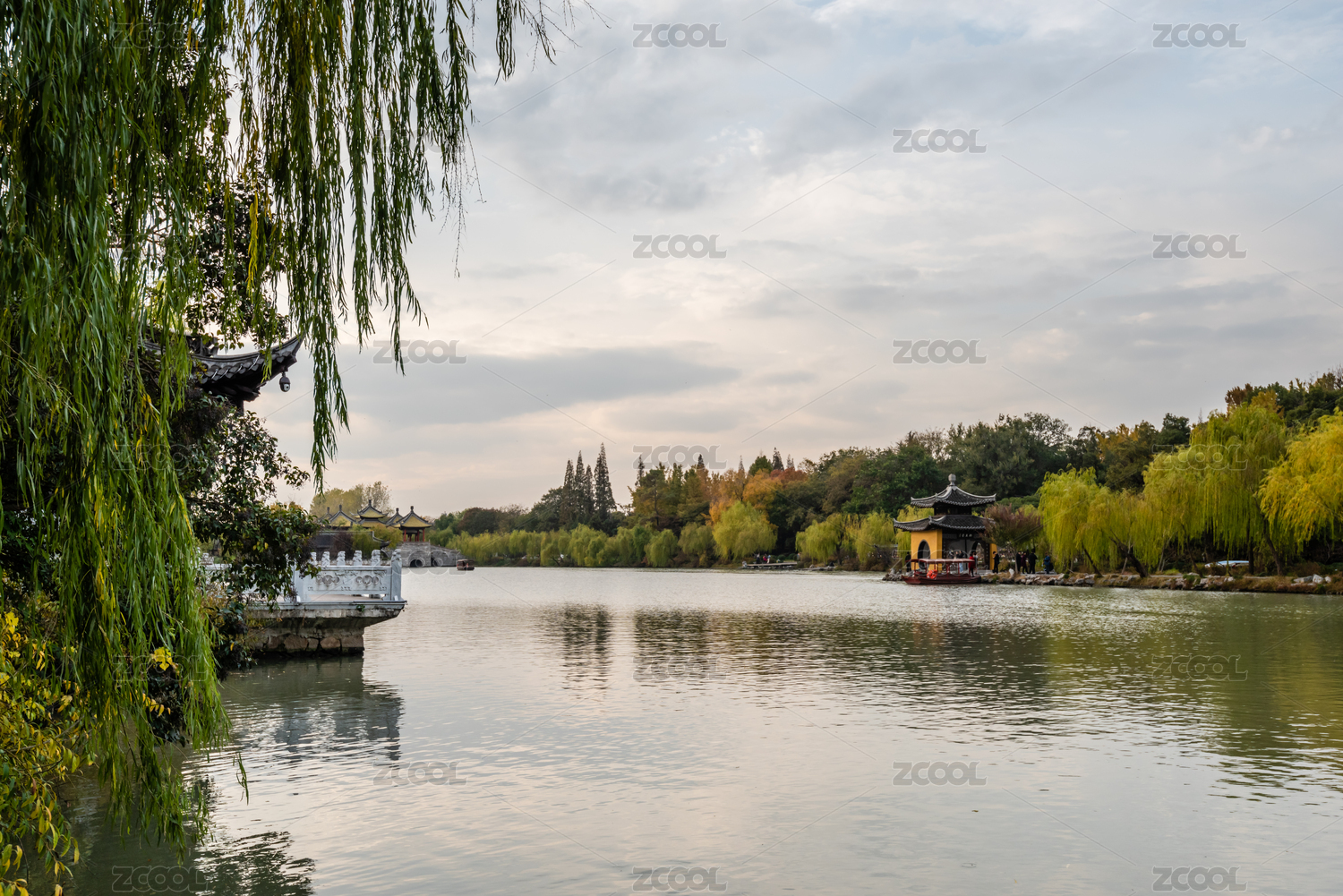 中国扬州瘦西湖风景区的长堤春柳