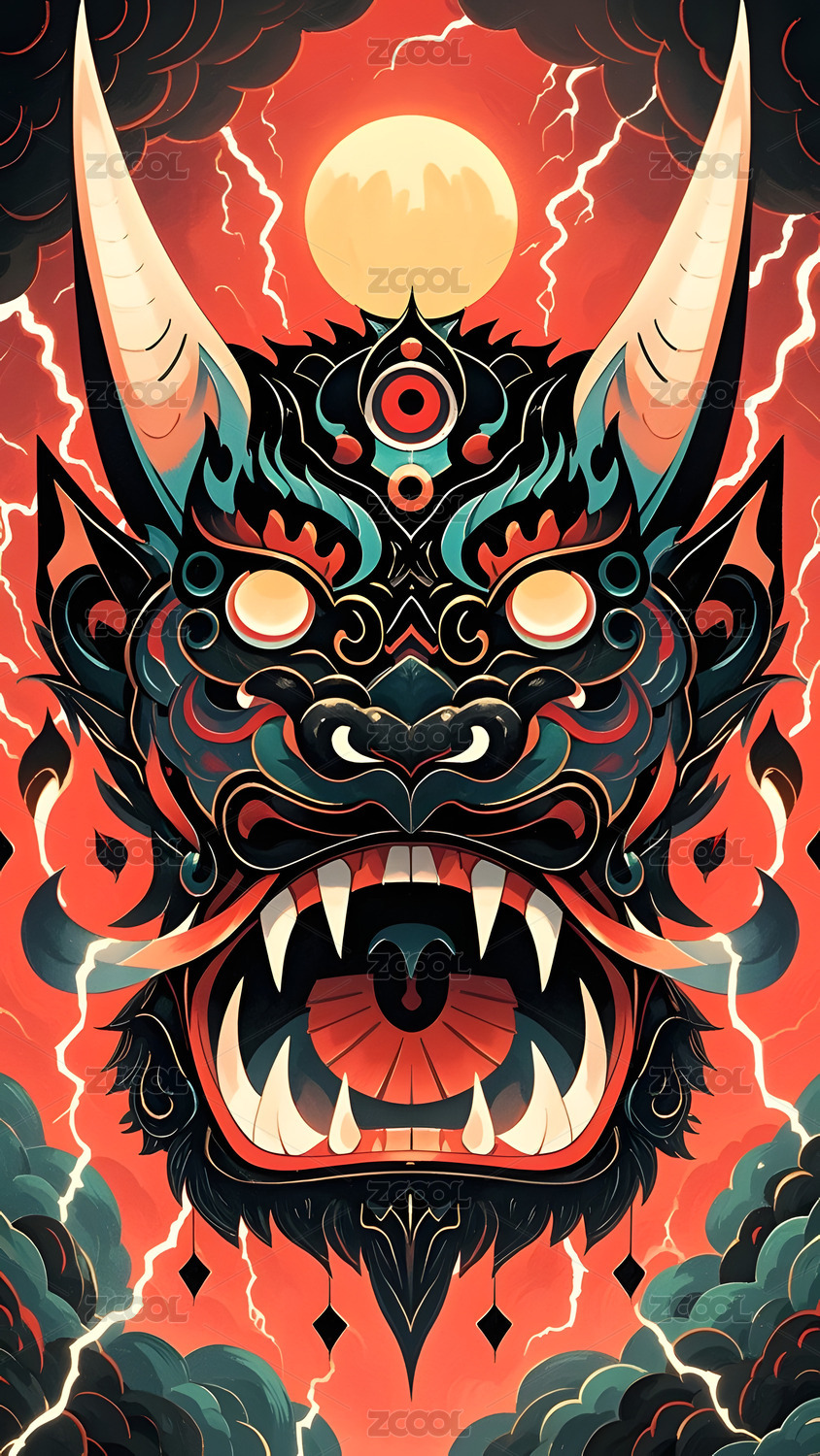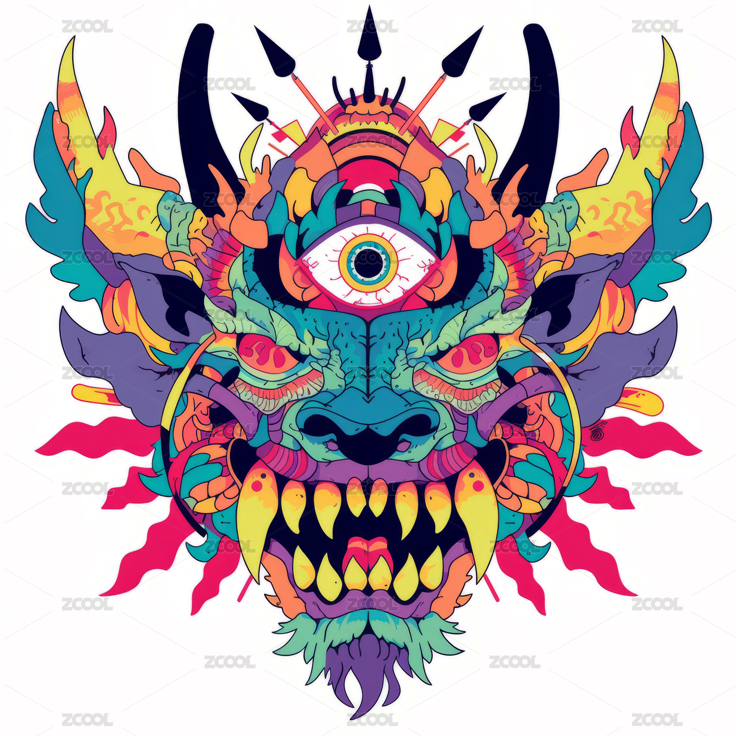 恶魔,怪物,龙,幻想,艺术,图画,彩色,鲜艳,复杂,对称