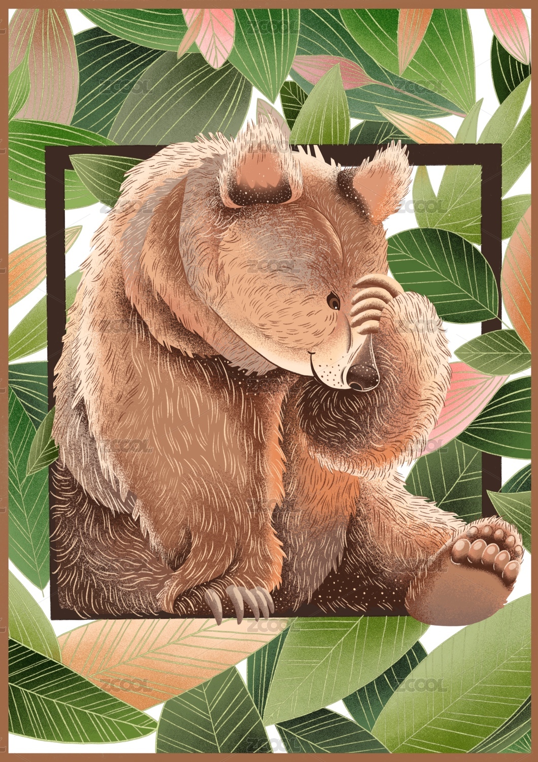 丛林棕熊主题的插画