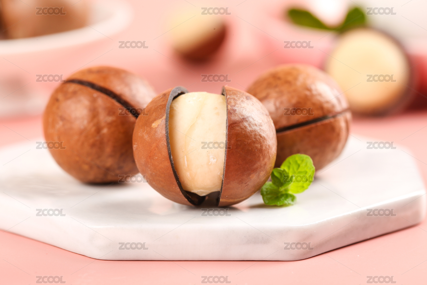 粉底上放着一盘澳洲坚果和夏威夷果果仁