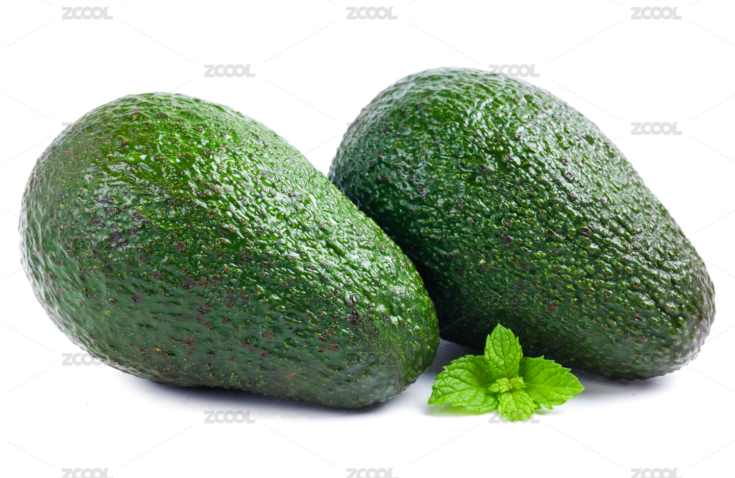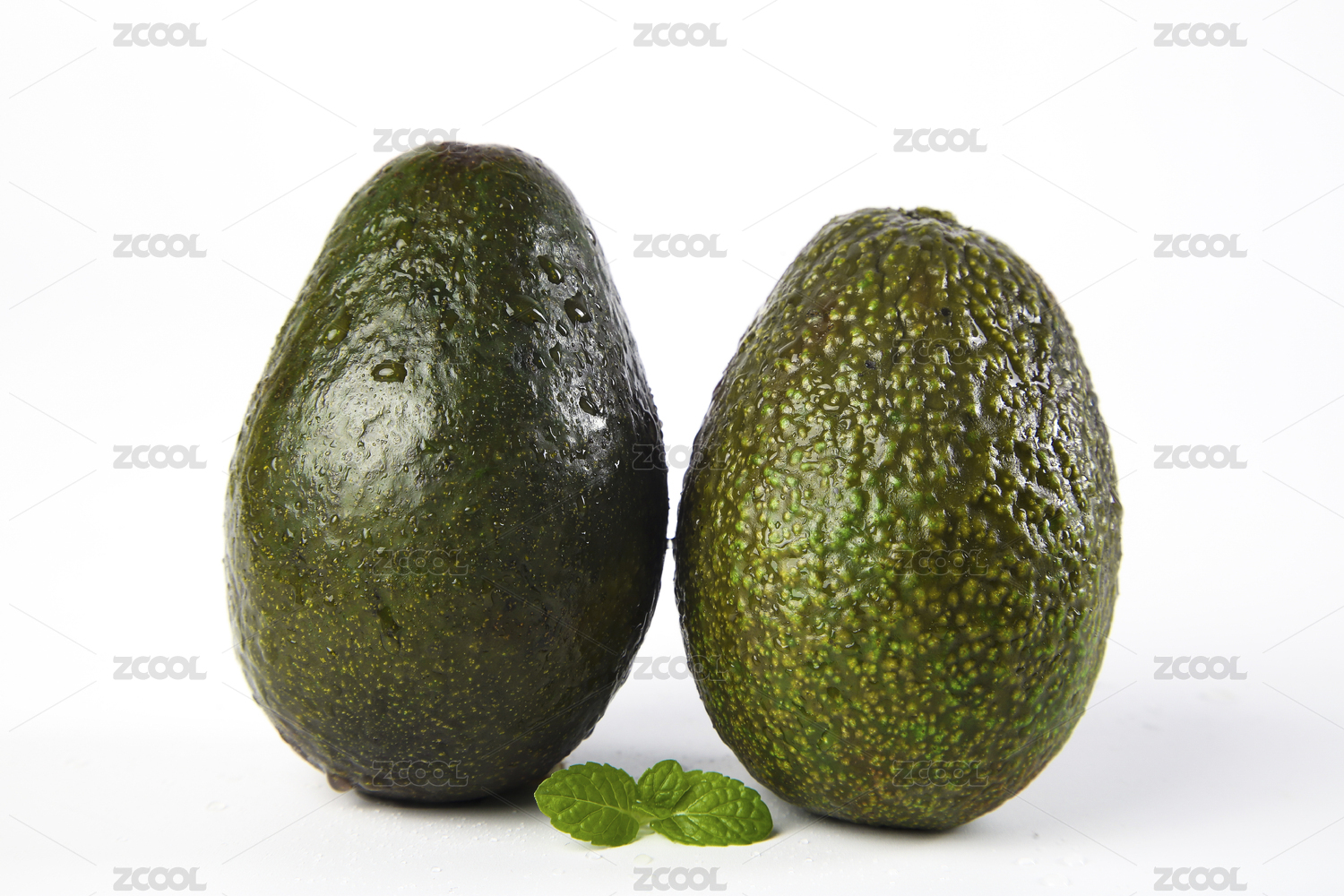 白底上放着一个完整的牛油果和一个削皮酪梨
