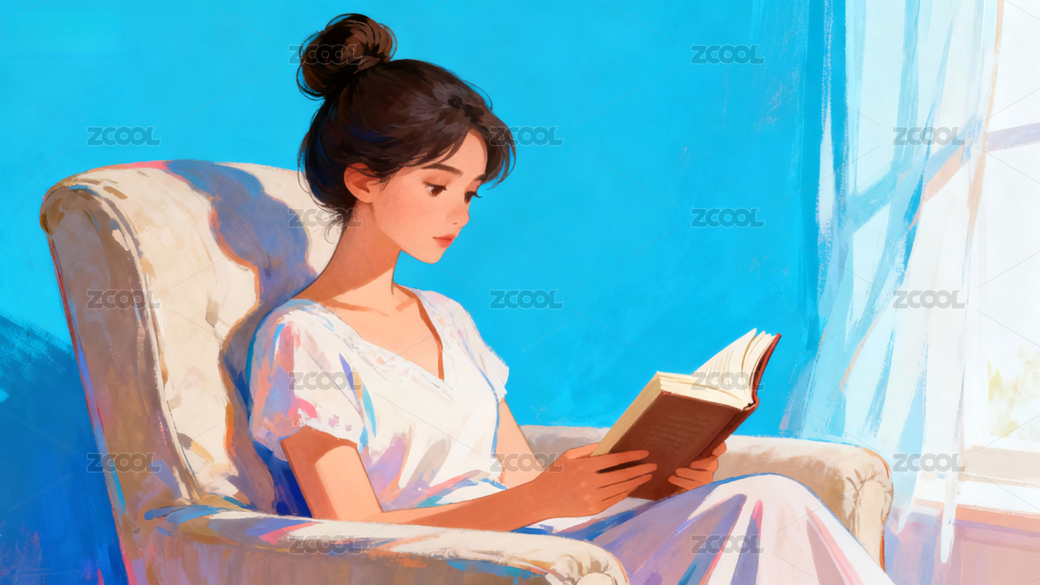 坐在窗前看书的少女