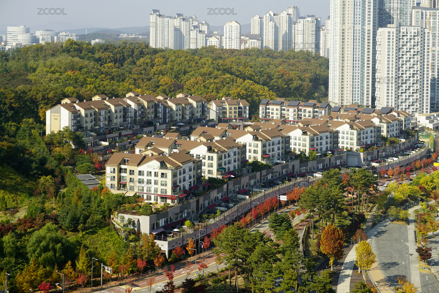 韩国水原市光教湖水公园畔的高档住宅区楼盘