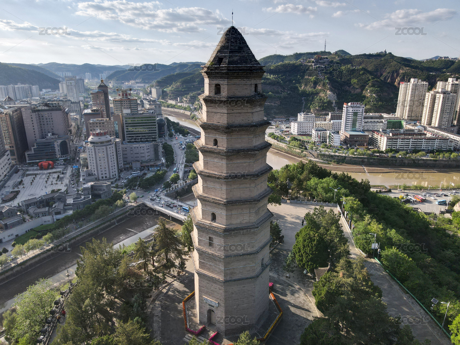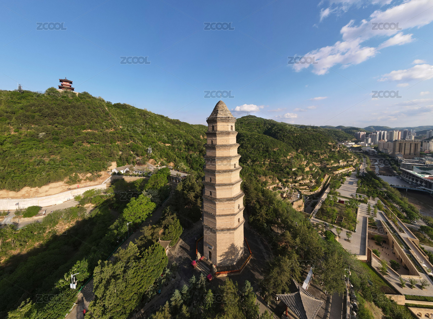风景,陕西省,延安,宝塔,宝塔山,户外,无人,旅游目的地,天空,地形