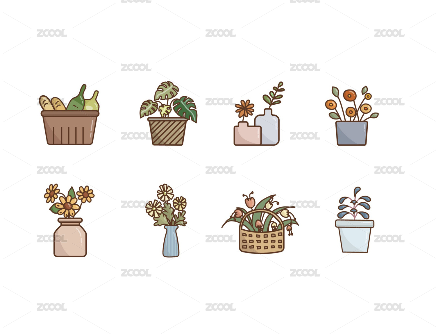 各种可爱手绘植物盆栽插画