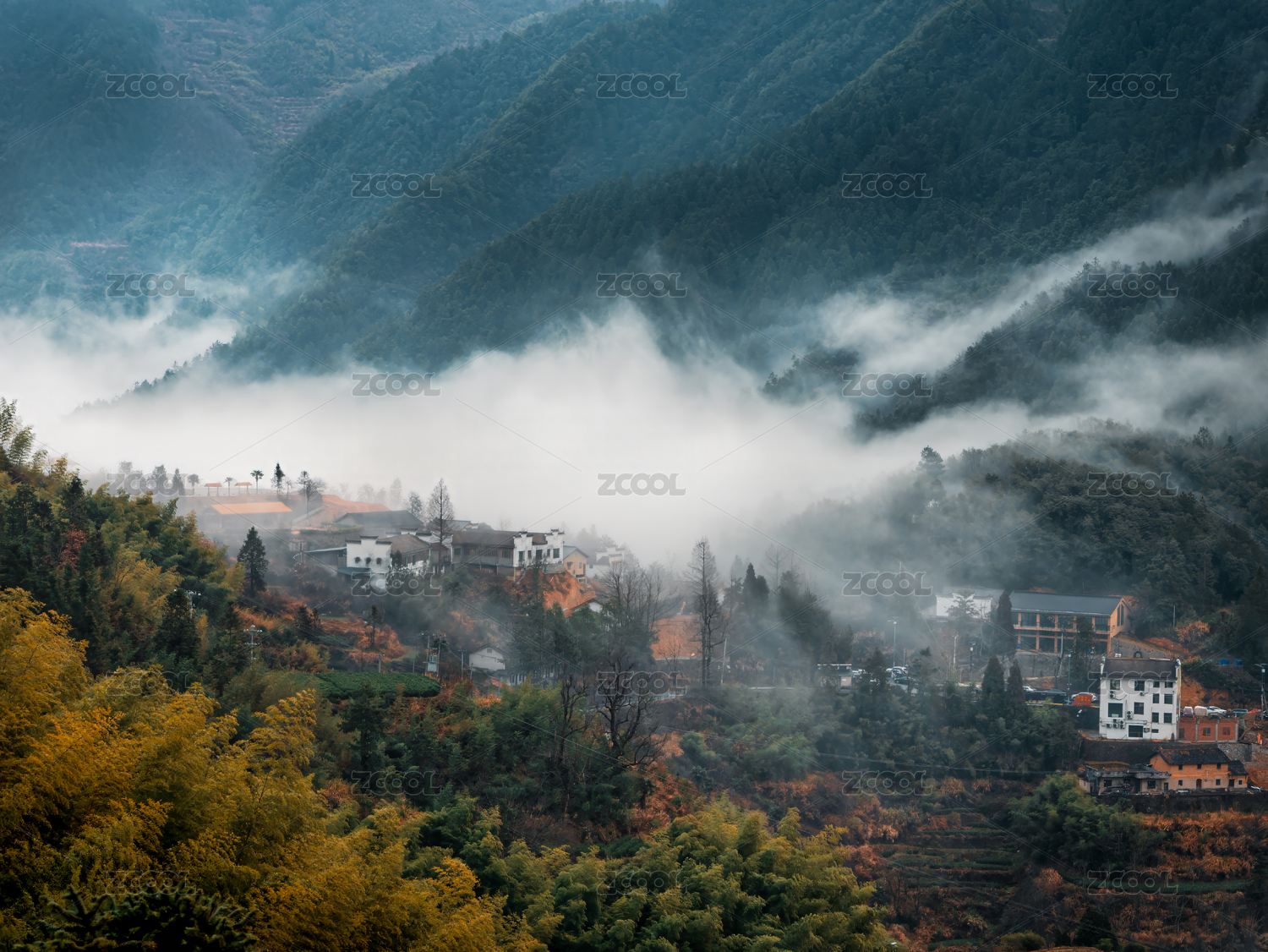 安徽歙县大洲源竹筒坦山村云海晨雾风光