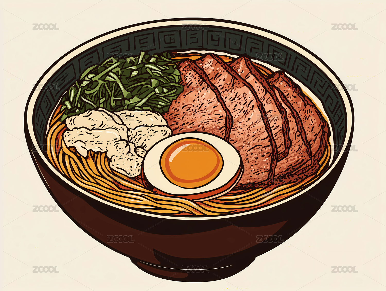 插画,面条,国潮风,食品,兰州拉面,特色,美食,兰州牛肉面,兰州,甘肃