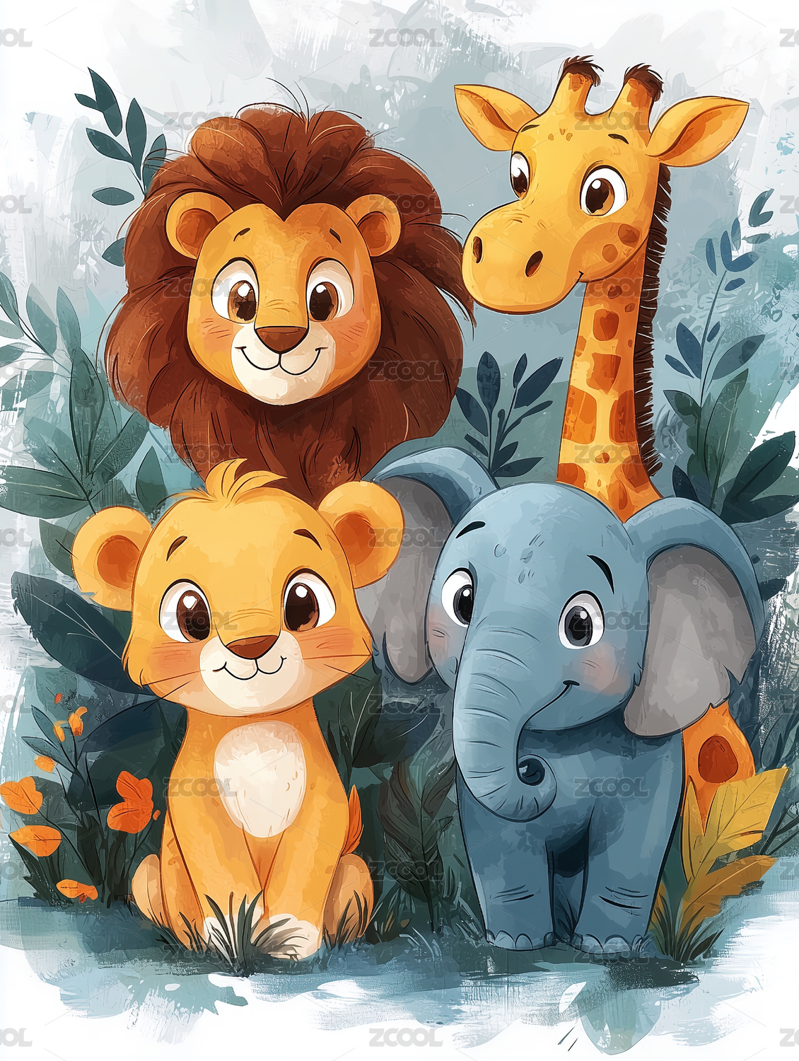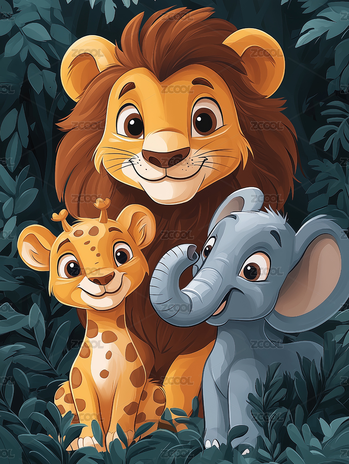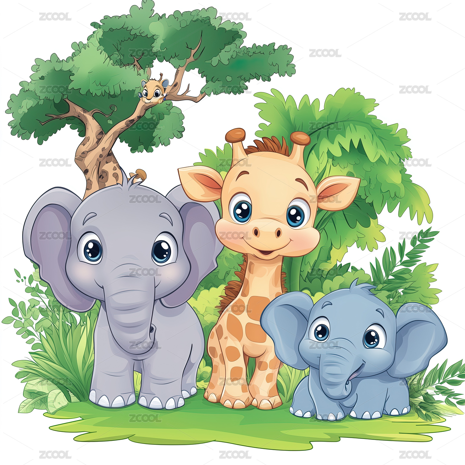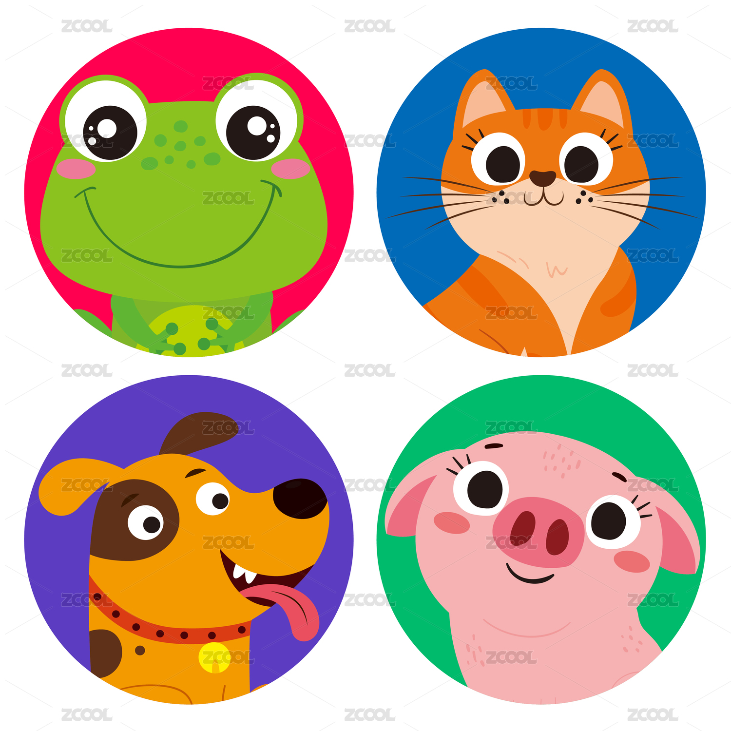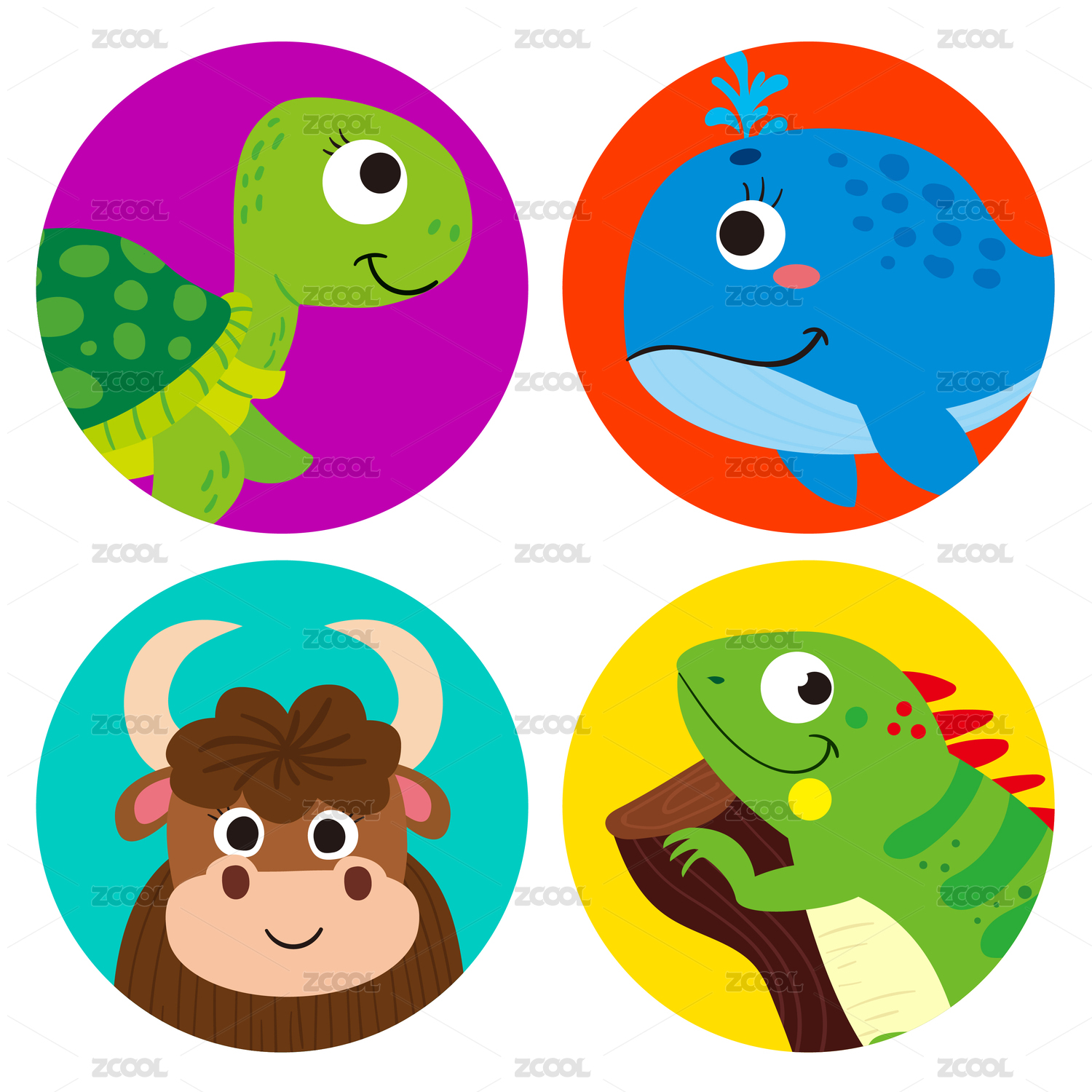 头像,贴纸,动物,卡通,可爱,开心,儿童,动物卡通,大象,猎豹