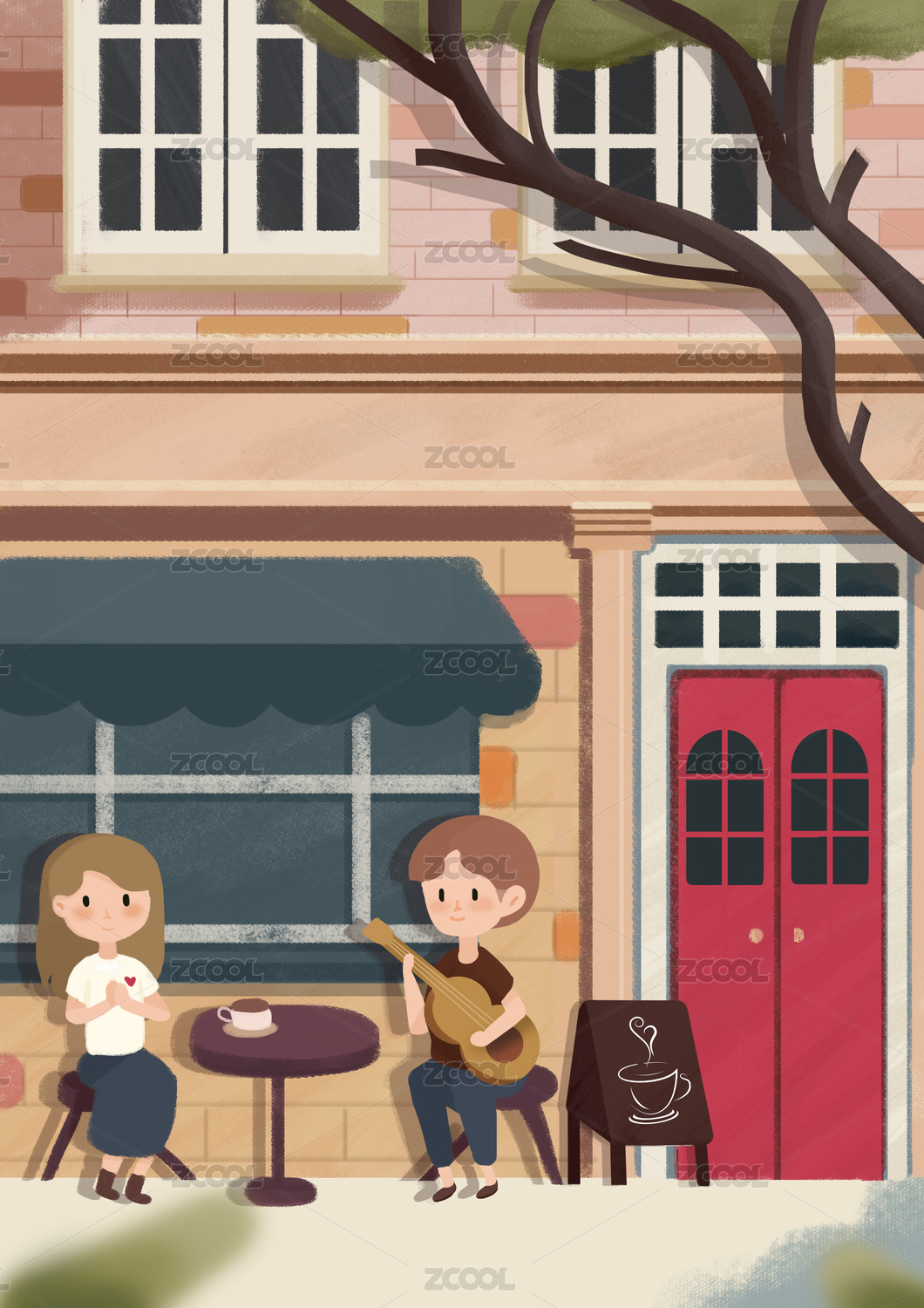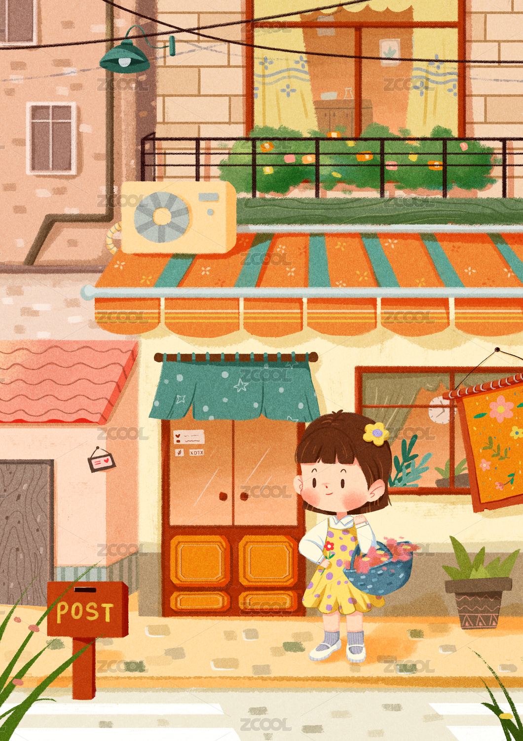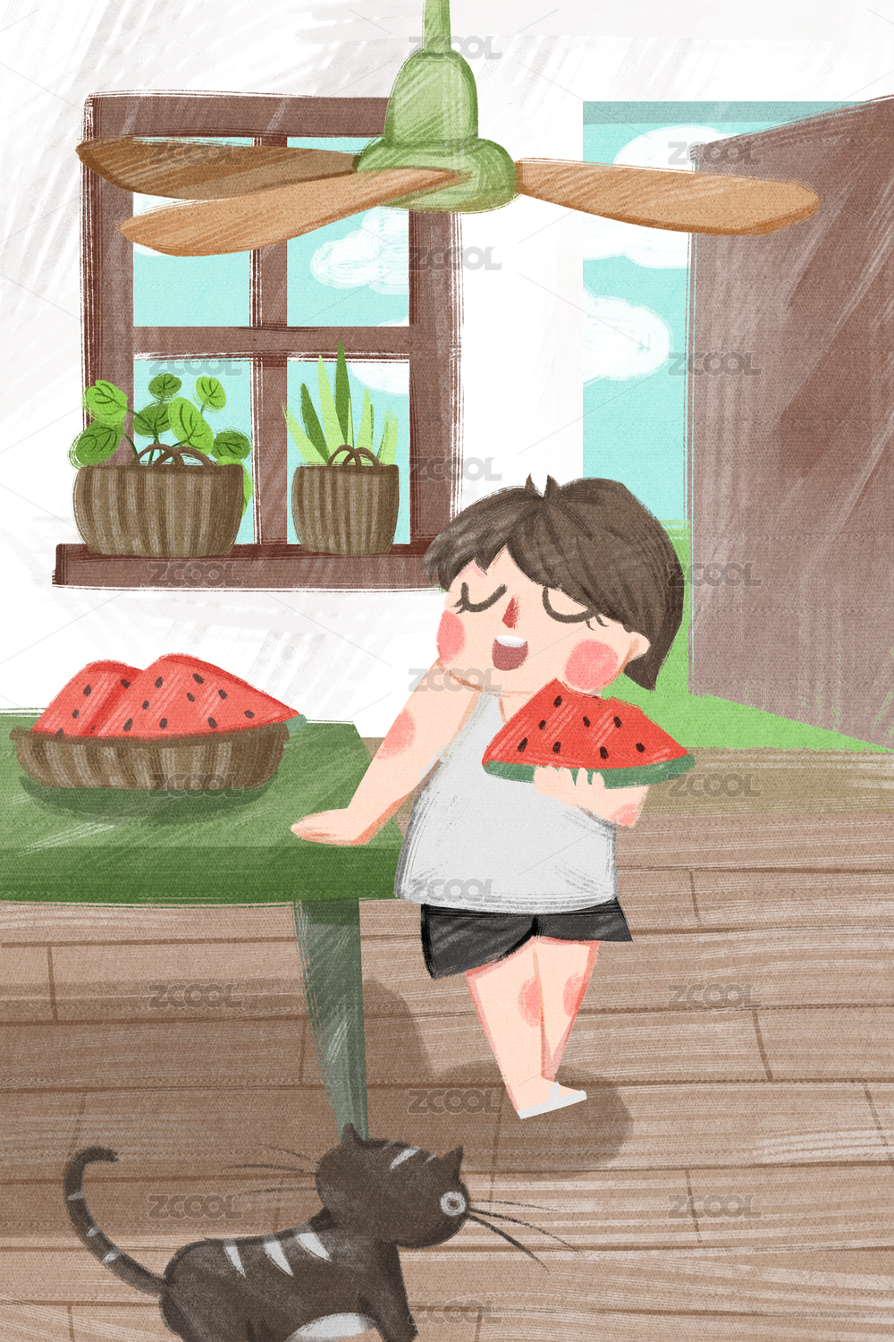 小女孩正在帮小白猫赶走野猫 板绘厚涂