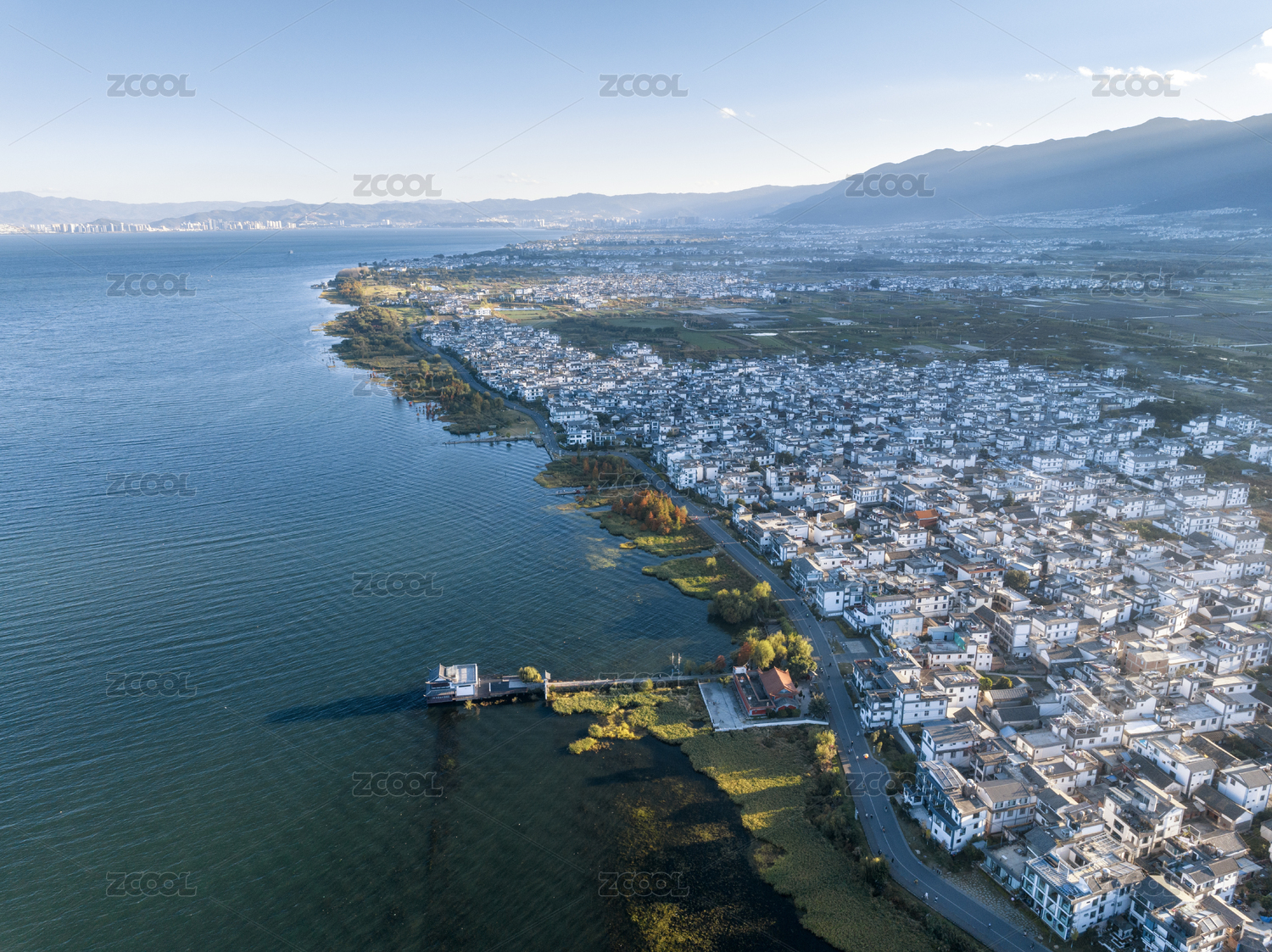 航拍云南大理双廊古镇景区洱海东北岸双廊镇