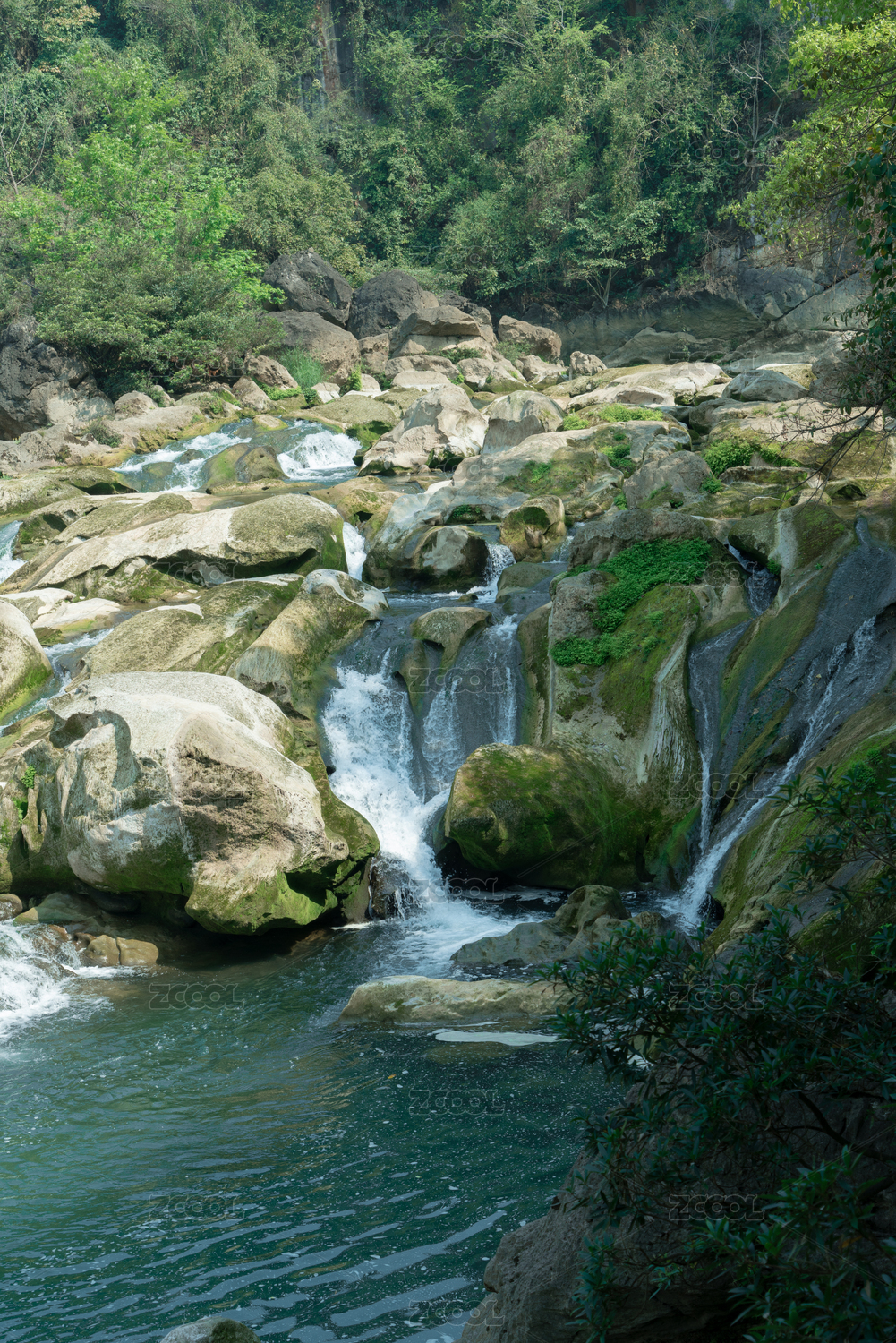 中国贵州黄果树景区山涧瀑布溪流山谷风光