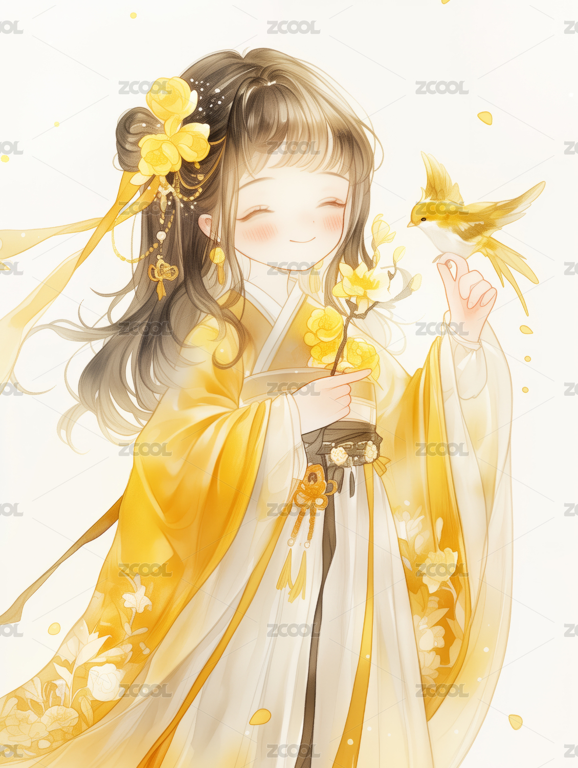 古风国潮汉服美女节日节气花朵荷梅水仙牡丹