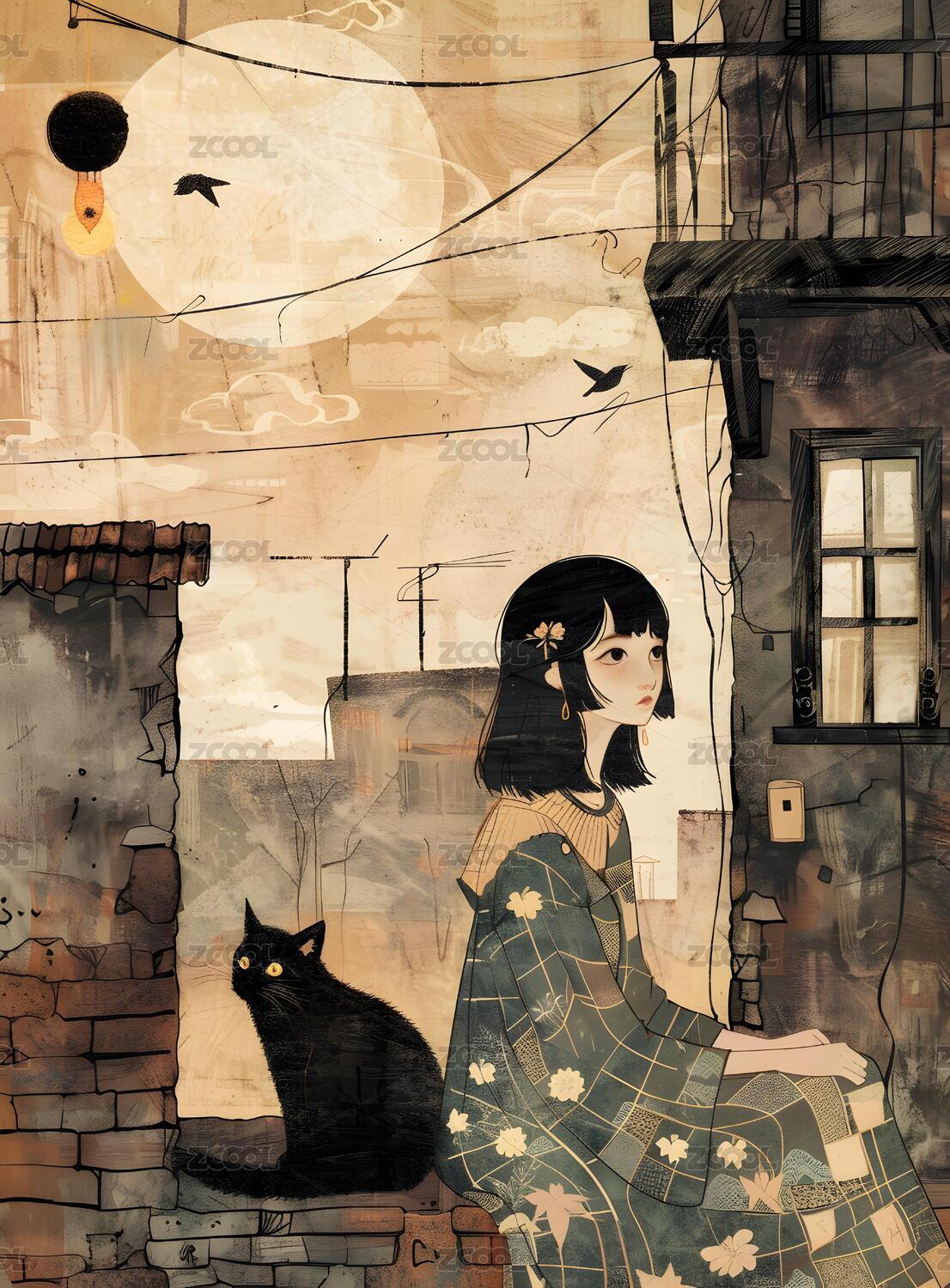AI主题插画之国风女孩