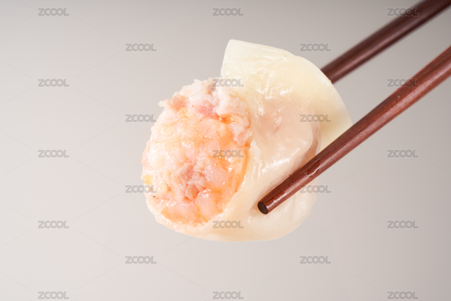 鲜虾猪肉馅料的饺子横切面特写