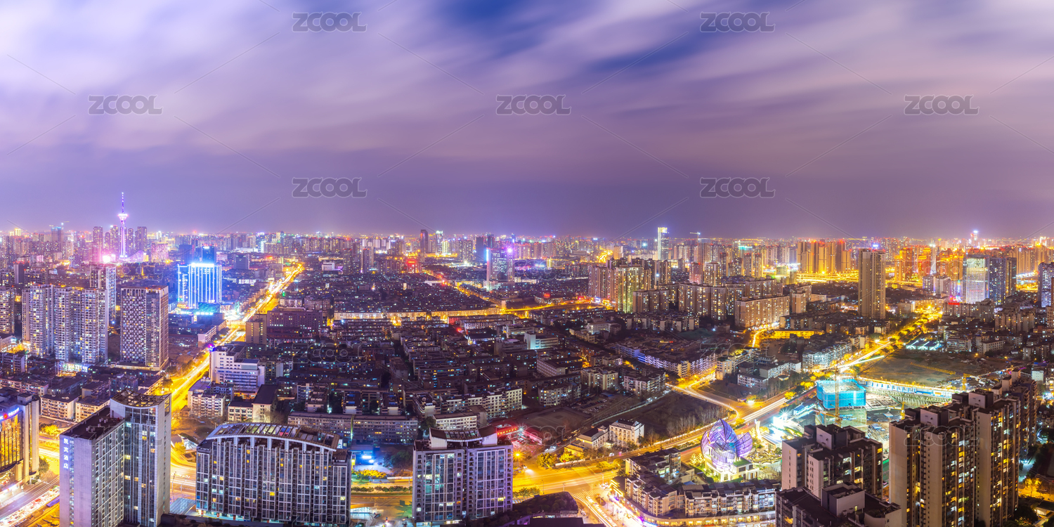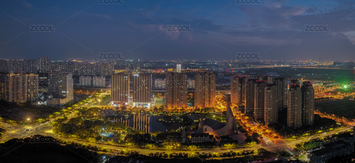 航拍常州城市夜景大画幅