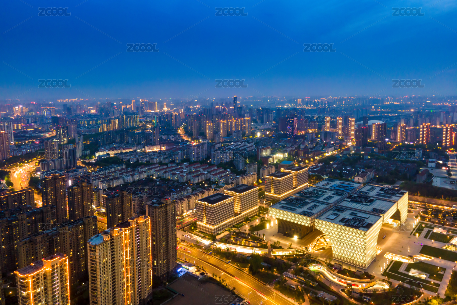中国杭州余杭未来科技城夜景航拍