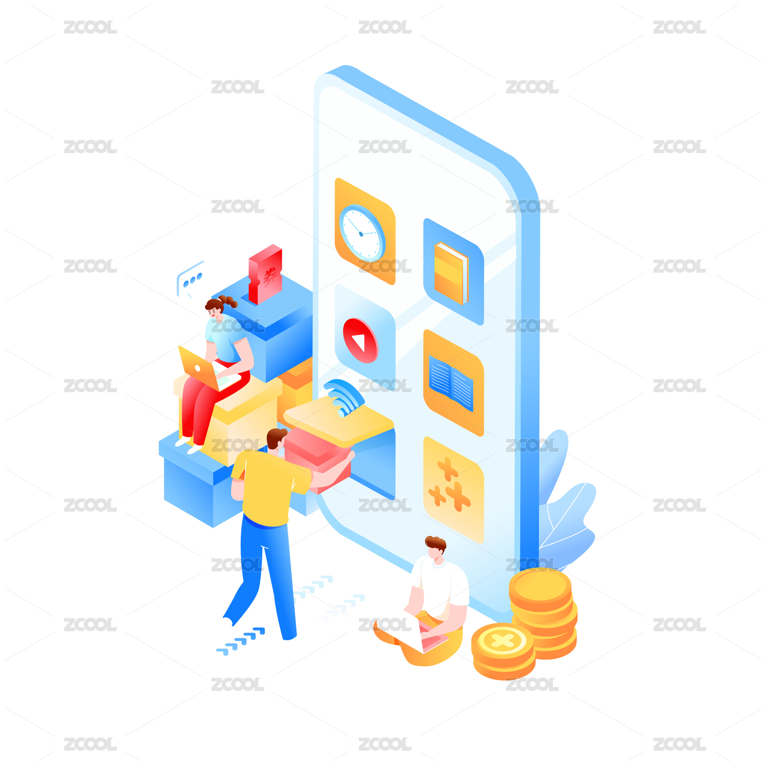 等距手机商城矢量插画