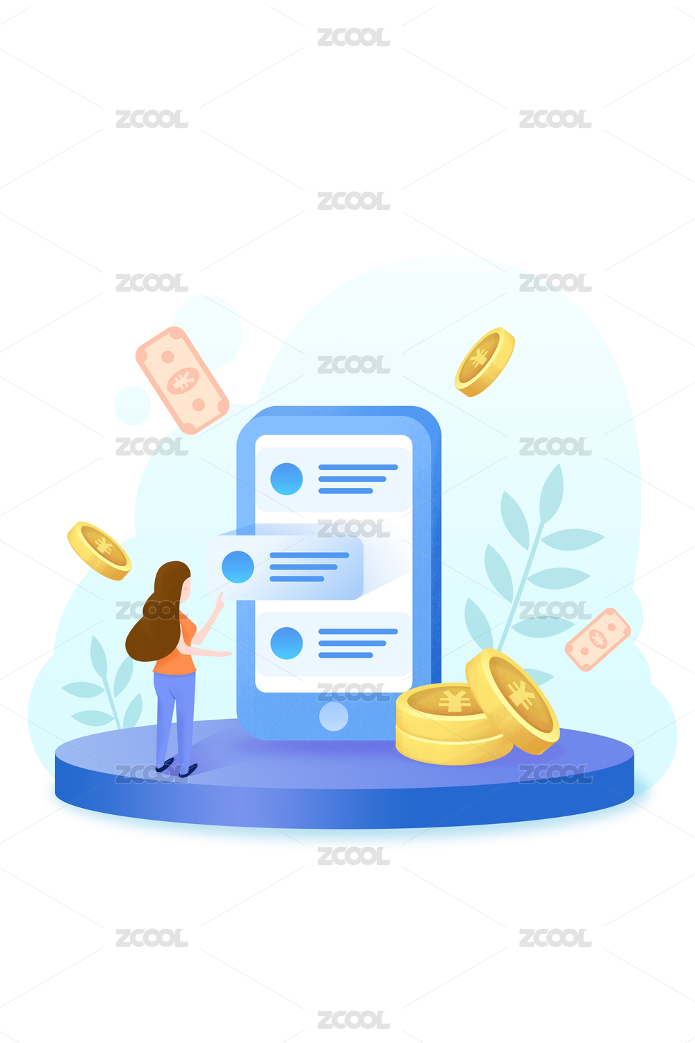 蓝色金融理财清新插画