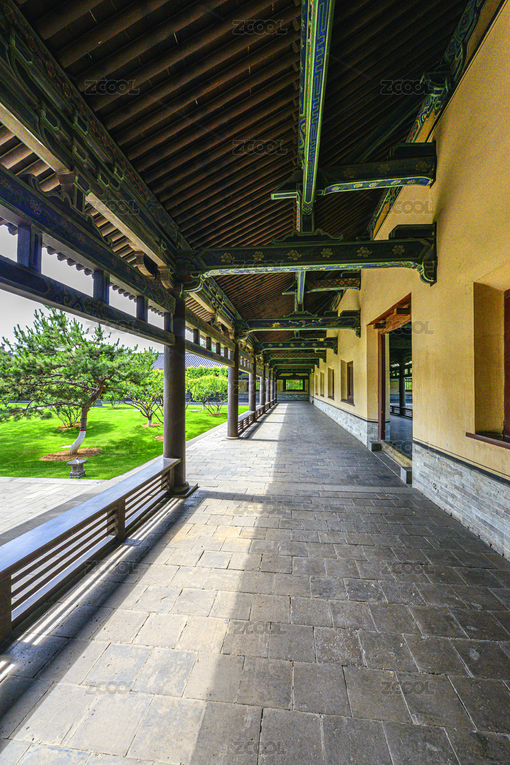 中国山西省大同市云冈石窟洞窟阁楼园林建筑